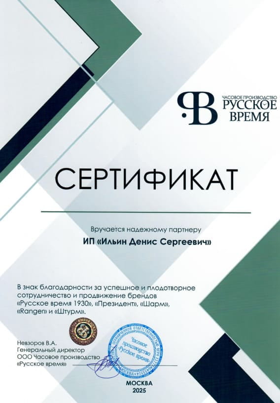 Сертификат Русское время