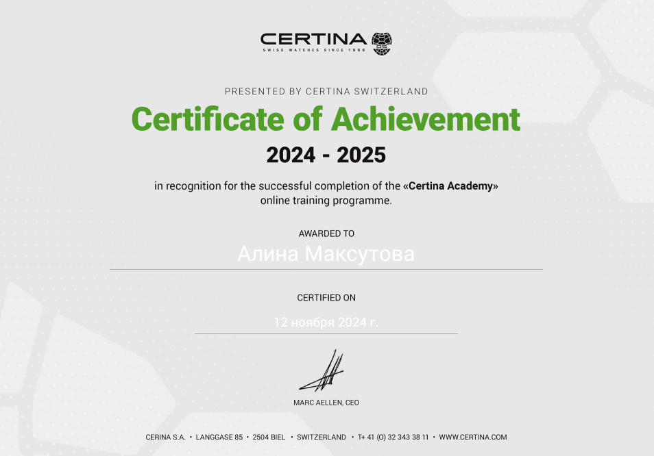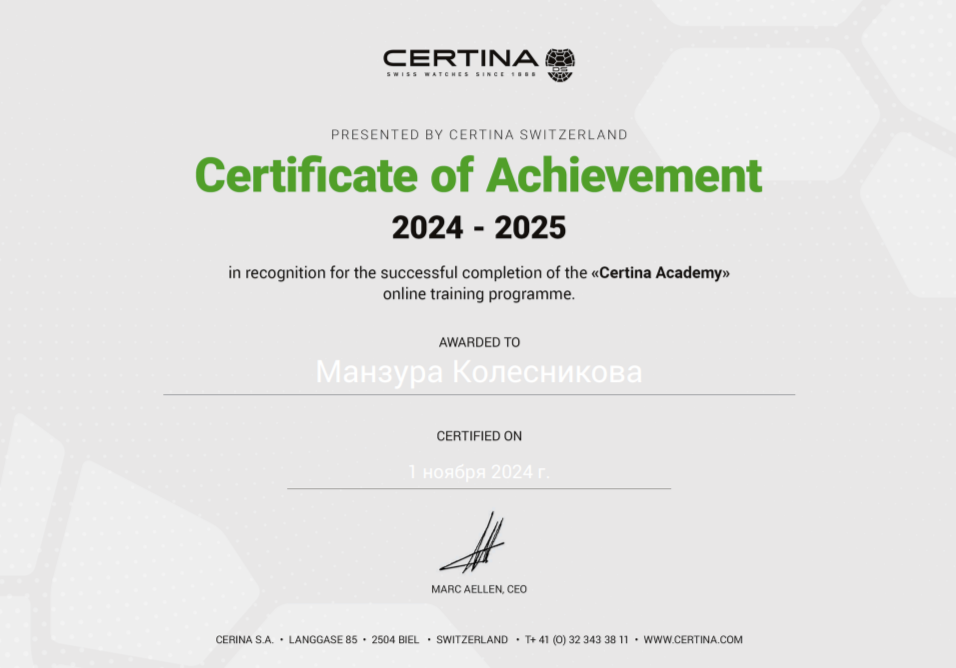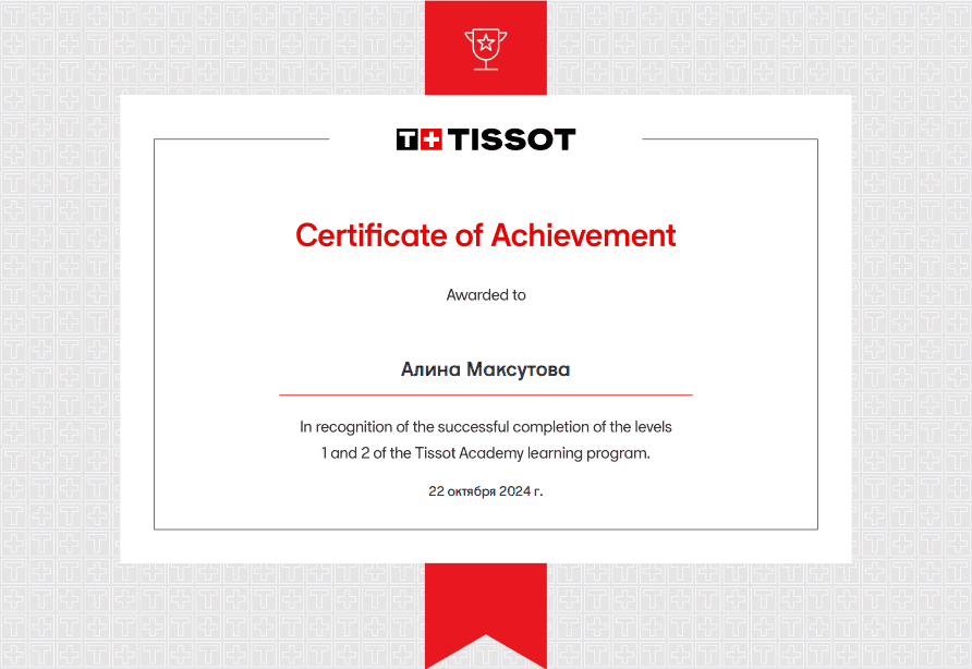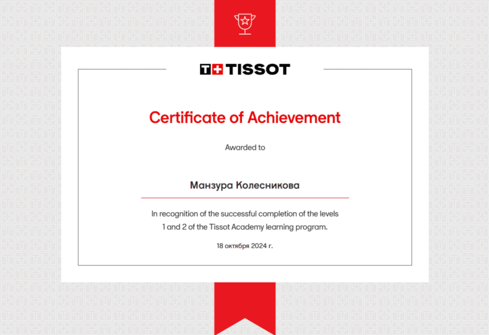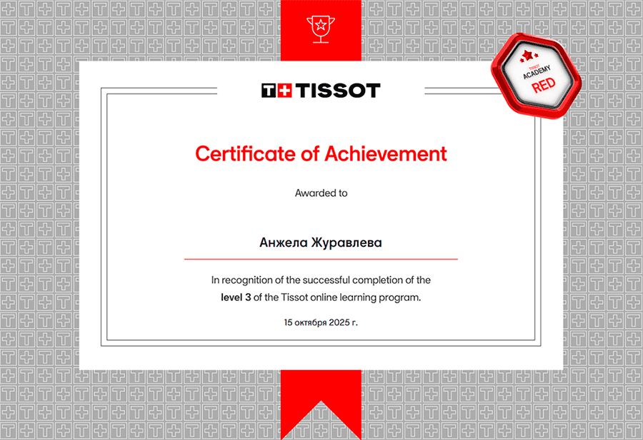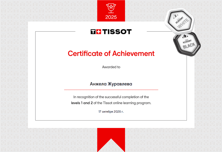 Наши консультанты проходят обязательную сертификацию у ведущих производителей часов, таких как Tissot, Rado, Certina и Casio. Это подтверждает их высокий уровень профессионализма и компетенций, необходимых для работы с оригинальной продукцией.