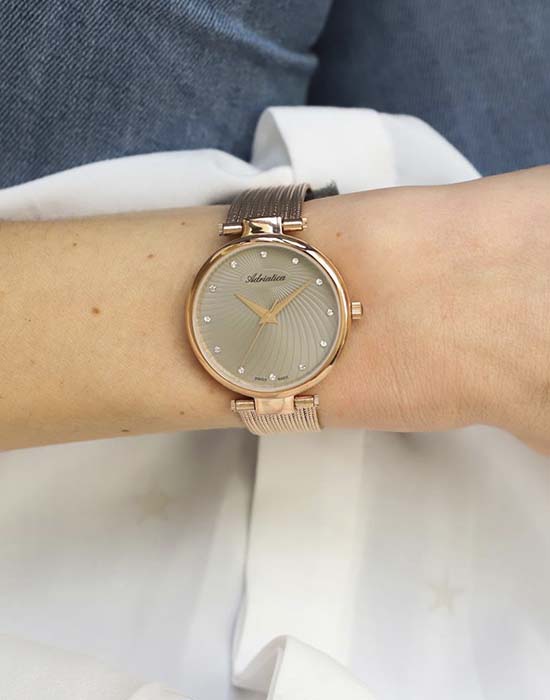 Женские часы с минеральным стеклом Adriatica A3689.9147Q, кварцевый механизм с высокой точностью. Класс водозащиты: 30 метров, позволит защитить корпус от случайных брызг или капель дождя. Корпус часов изготовлен из стали, золотистого цвета.