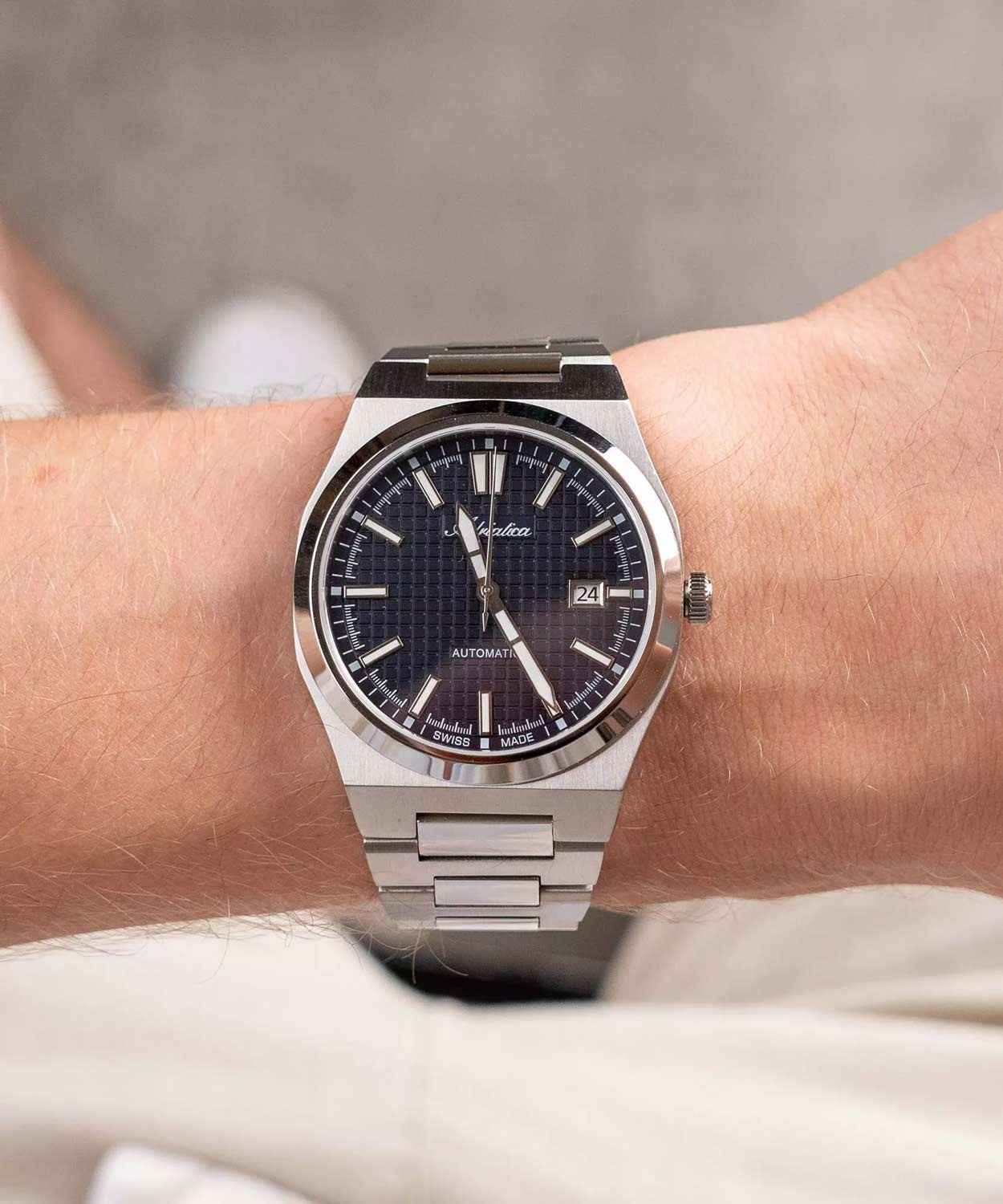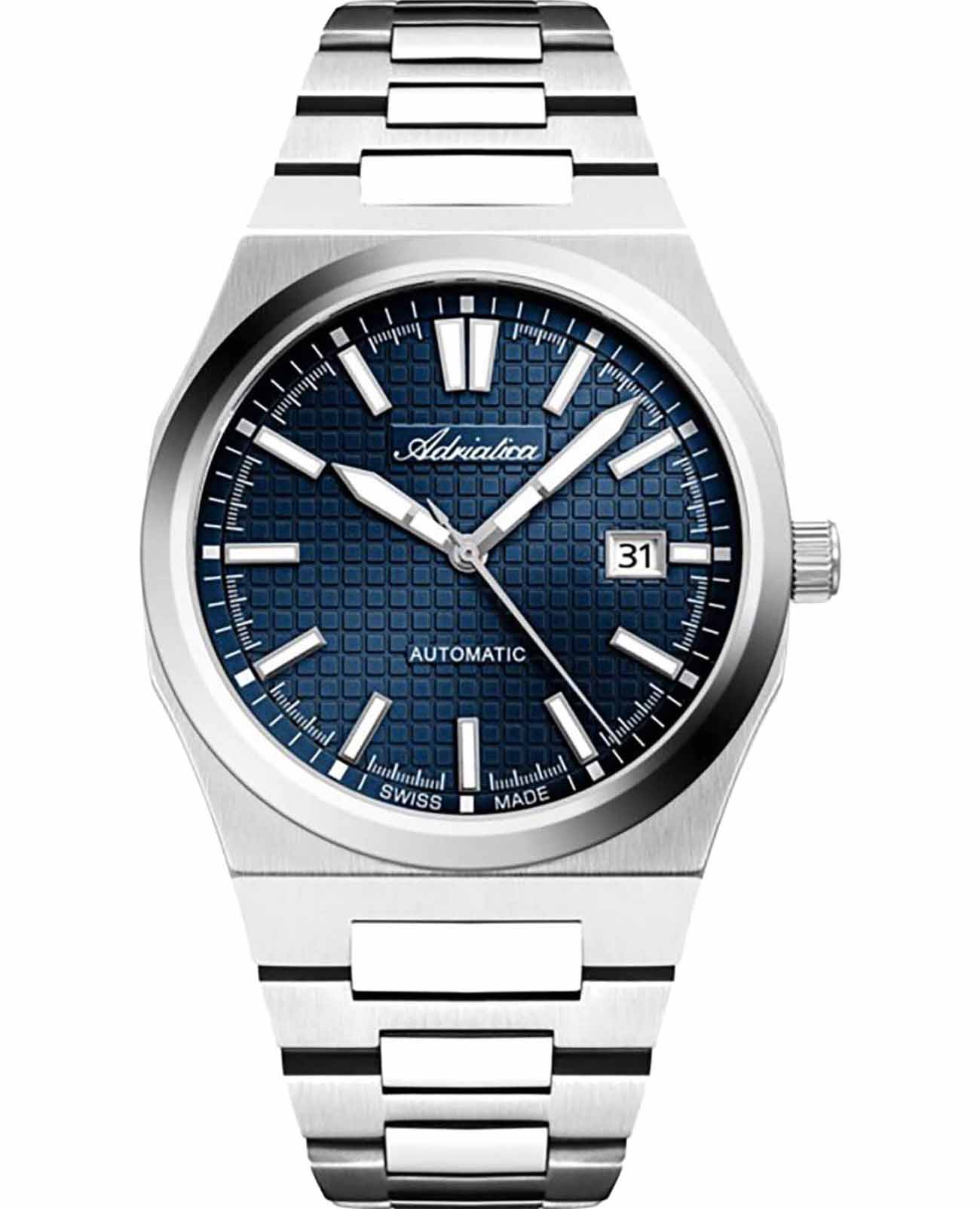 Часы Adriatica Premiere A8326.5115A воплощают в себе элегантность и функциональность, идеально подходящие для современных мужчин, ценящих швейцарское качество. Их синий циферблат защищенный сапфировым стекломСапфировое стеклоПрочный и надёжный материал из кристалла сапфира синтетического происхождения, характеризующийся особой твёрдостью и устойчивостью к царапинам и повреждениям., заключен в корпус из нержавеющей стали диаметром 40 мм и толщиной 10 мм. Эти механические часы с автоподзаводом имеют калибр Ronda 150, который обеспечивает высокую точность, а водозащита 5 ATM делает часы устойчивыми к воздействию воды. Стальной браслет с раскладной застёжкойРаскладная застёжкаТакой тип застёжки используется только на браслетах из металла. Она никогда не раскрывается полностью, происходит разделение на 2 и более частей. Раскладывающая застёжка снизит вероятность потери часов к минимуму. обеспечивает комфортное и надежное ношение. Часы оснащены функцией отображения даты в окошке в положении 3 часа, что добавляет практичности в повседневной жизни. Люминесцентное покрытиеЛюминесцентное покрытиеПозволяет считывать показания времени в темноте. Производители наносят на стрелки, часовые индексы, безель или поверхность циферблата светонакопительный состав, дающий холодное свечение. на стрелках и метках обеспечивает отличную видимость в темноте.