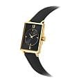 Женские кварцевые часы Amalys из коллекции Hepburn — это элегантный и универсальный аксессуар. Корпус прямоугольной формы размером 23×28 мм выполнен из нержавеющей стали с PVD-покрытиемPVDУльтратонкое покрытие наносится в технике вакуумного напыления, сочетает в себе нитрид титана особой прочности со слоем золота или оксида хрома. Несёт в себе декоративную или защитную функцию. цвета жёлтого золота. Циферблат чёрного цвета оформлен римскими цифрами и стрелками. Циферблат защищён минеральным стекломМинеральное стеклоМинеральное стекло представляет собой искусственно выращенный минерал кварца. Такое стекло отличается особой устойчивостью к повреждениям и царапинам. Уступает по некоторым качествам сапфировому стеклу.. Часы оснащены чёрным кожаным ремешком на классической пряжке. Водонепроницаемость 30 м позволяет использовать часы в повседневных условиях. Идеальный выбор для тех, кто ценит бельгийское качество и классический дизайн.