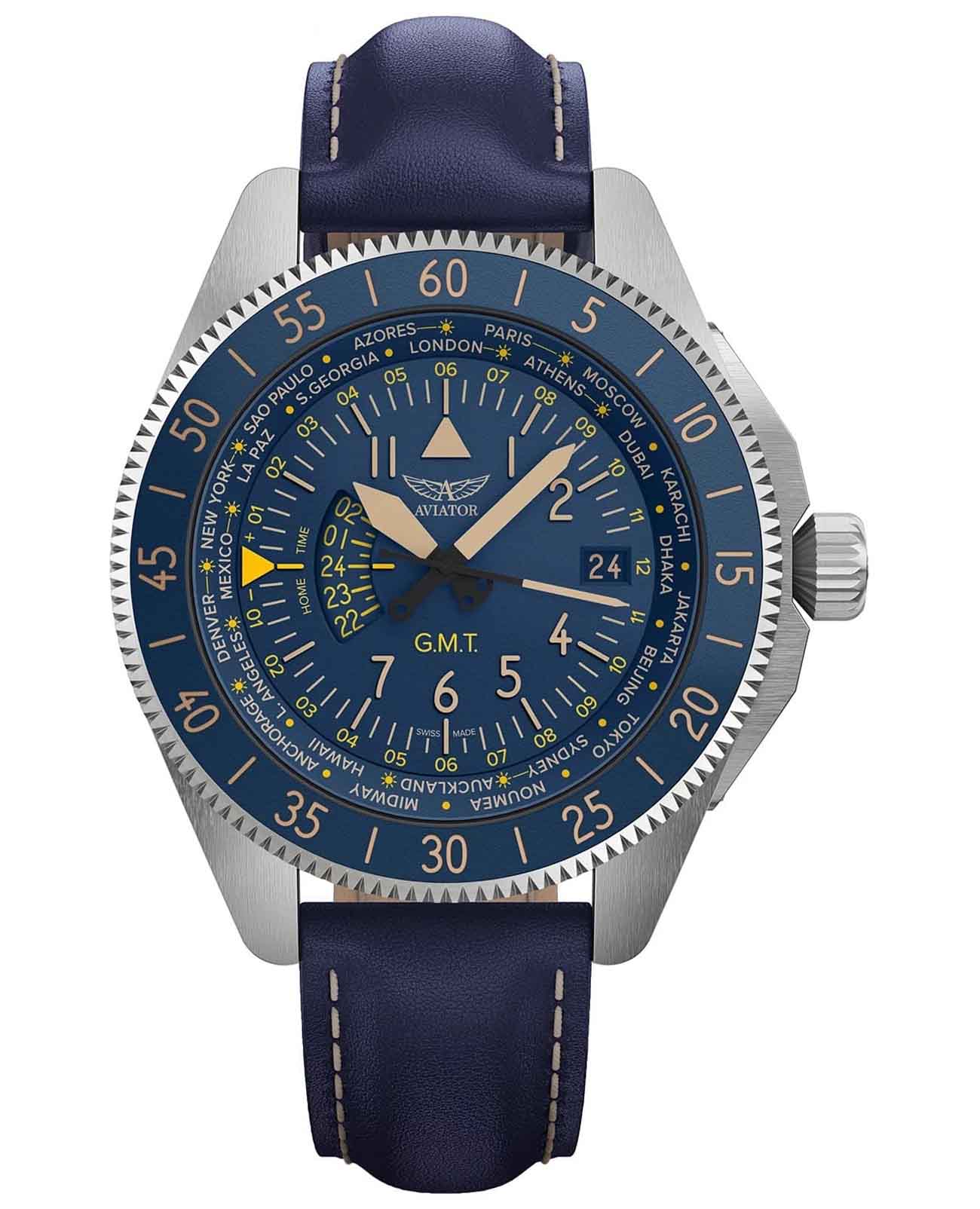 Aviator Airacobra V.1.37.0.304.4 “Airacobra GMT” — сбалансированный швейцарский пилотский GMT, сочетающий техническую строгость с удобными функциями для путешествий. Корпус диаметром 43 мм из нержавеющей стали обеспечивает уверенное ощущение надёжности, а герметичность до 100 м защищает при любой погоде .