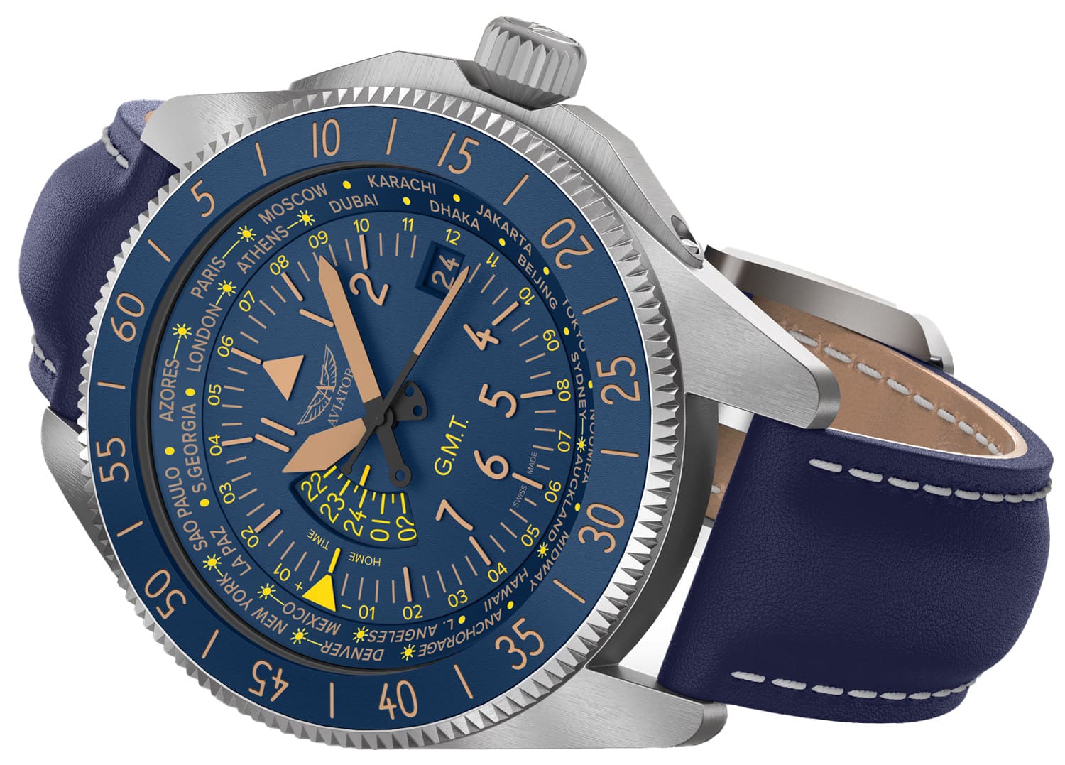 Airacobra GMT — инструментальное сочетание часовой точности, удобной функциональности GMT и авиационной эстетики, предназначенное для тех, кто ценит практичность и стиль в равной мере.