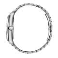 Завершает образ стальной браслет с раскладывающейся застежкой-бабочкойЗастёжка "бабочка"Такой вид застёжки дополняется предохранителями, помогающими избежать случайного раскрытия браслета. Обладают изящным исполнением. , обеспечивающей комфорт и уверенную фиксацию на запястье. Такая застежка выглядит стильно и практично.