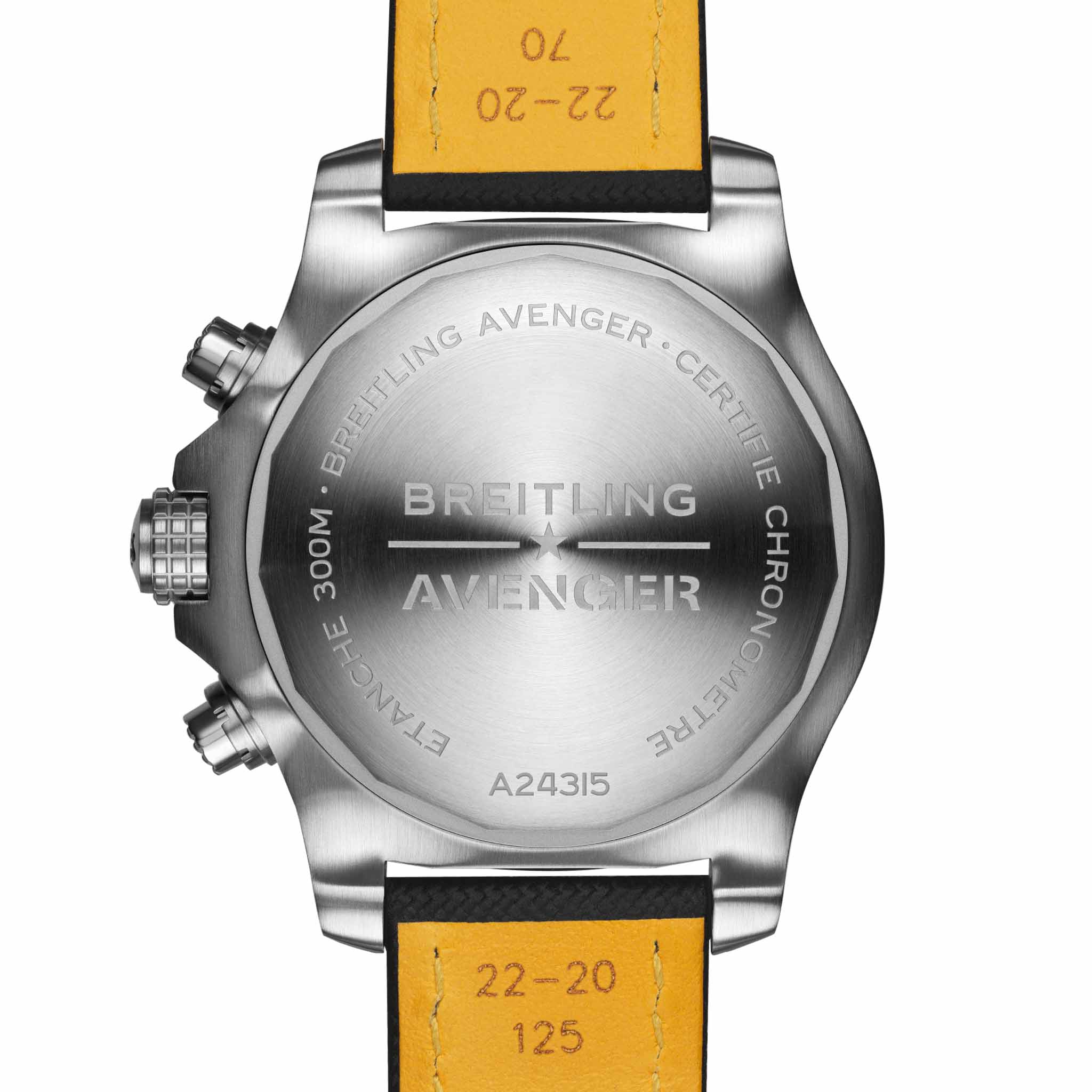Смелый, чрезвычайно прочный и ударопрочный хронографХронографФункция позволяет измерять отрезки времени с особой точностью: часы, минуты, секунды. Верным признаком хронографа является наличие на циферблате 3 дополнительных окошек-счётчиков. Avenger GMT 45 сочетает в себе точность и мощный дизайн. Как настоящий Breitling Avenger, он обеспечивает непревзойденную безопасность и надежность любому воздушному искателю приключений. ХронографХронографФункция позволяет измерять отрезки времени с особой точностью: часы, минуты, секунды. Верным признаком хронографа является наличие на циферблате 3 дополнительных окошек-счётчиков. Avenger GMT 45 оснащен прочным 45-миллиметровым корпусом из нержавеющей стали, черным циферблатом и браслетом из нержавеющей стали или ремешком из кожи военного образца в тон. Благодаря прочному безелюБезельВнешний ободок, закрепляющий стекло. В спортивных часах так называется поворотное кольцо с делениями на циферблате, выполняет роль таймера – замеряет отрезки времени на шкале. Неподвижный безель – элемент декора. Однонаправленно вращающийся безель на дайверских часах позволяет фиксировать моменты погружения и выныривания на поверхность. и специальному рисунку на заводной головке и кнопках хронографаХронографФункция позволяет измерять отрезки времени с особой точностью: часы, минуты, секунды. Верным признаком хронографа является наличие на циферблате 3 дополнительных окошек-счётчиков. Avenger Chronograph GMT 45 можно легко использовать в перчатках.