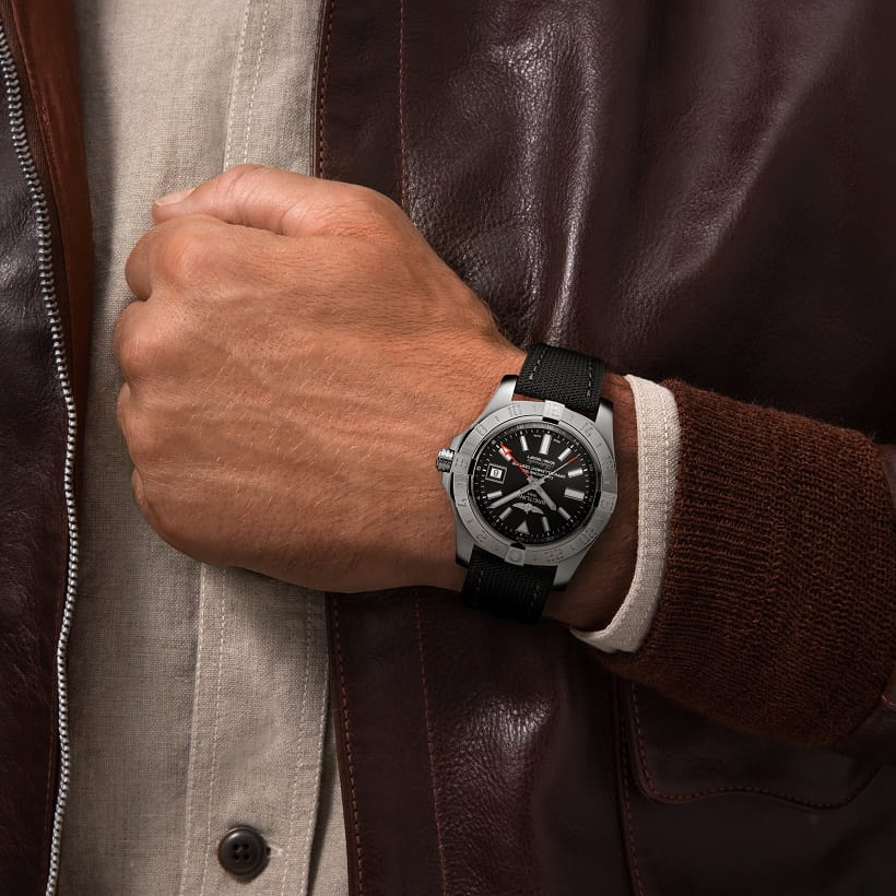 Мужские швейцарские часы Breitling Avenger II GMT A32390111B1W1, механический механизм (автоматический калибр) Breitling 32 с высокой точностью. Выпуклое сапфировое стекло устойчивое к появлению царапин, обладающее высокой прозрачностью и антибликовым покрытием с обеих сторон.