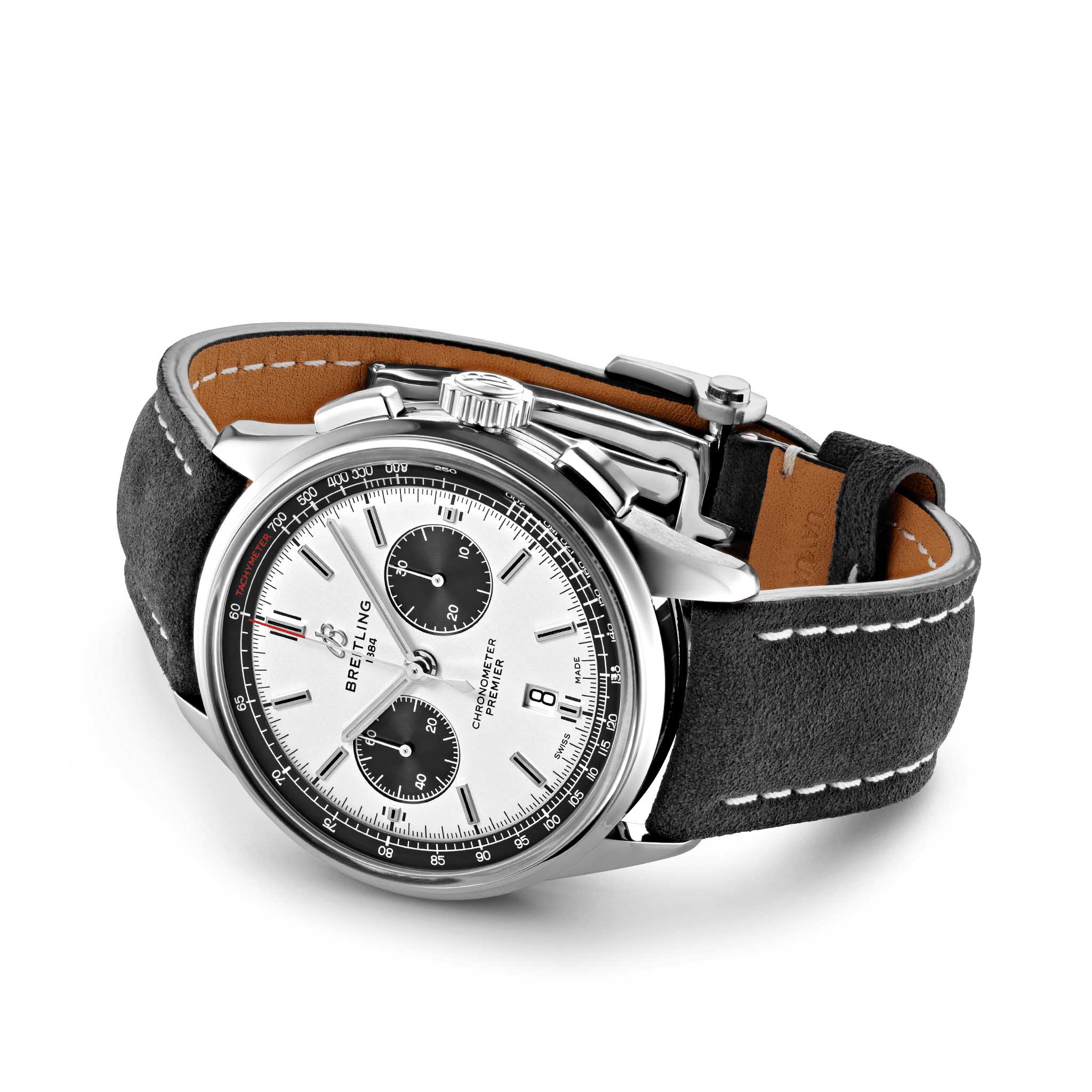 Часы Premier, разработанные Вилли Брайтлингом в 40-х годах прошлого века, стали первой моделью бренда, которая задумывалась в первую очередь как стильный аксессуар. Современная версия Premier, как и ее историческая предшественница, отличается элегантностью и изысканными деталями в стиле ретро, которые подчеркивают безупречный стиль своего владельца. Квадратные кнопки хронографаХронографФункция позволяет измерять отрезки времени с особой точностью: часы, минуты, секунды. Верным признаком хронографа является наличие на циферблате 3 дополнительных окошек-счётчиков., циферблат «панда», характерный для хронографов с компоновкой bi-compax, бороздки по бокам корпуса и прозрачная задняя крышка из сапфирового стеклаСапфировое стеклоПрочный и надёжный материал из кристалла сапфира синтетического происхождения, характеризующийся особой твёрдостью и устойчивостью к царапинам и повреждениям. – все эти детали создают оригинальный внешний вид модели.