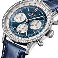 Мужские швейцарские часы-хронографХронографФункция позволяет измерять отрезки времени с особой точностью: часы, минуты, секунды. Верным признаком хронографа является наличие на циферблате 3 дополнительных окошек-счётчиков. с секундомеромСекундомерСекундоме́р — прибор, способный измерять интервалы времени с точностью до долей секунды. Breitling Navitimer B01 Chronograph 41 AB0139631C1P1, механический механизм (автоматический калибр) с высокой точностью. С момента своего дебюта 70 лет назад icon от Breitling претерпел множество модификаций, но этот новый Navitimer отражает его самые классические функции, дополняя их современными усовершенствованиями. Сплющенная логарифмическая линейка и выпуклый кристалл создают иллюзию более изящного профиля. Сапфировое стеклоСапфировое стеклоПрочный и надёжный материал из кристалла сапфира синтетического происхождения, характеризующийся особой твёрдостью и устойчивостью к царапинам и повреждениям. устойчивое к появлению царапин, обладающее высокой прозрачностью. Класс водозащиты: 30 метров, позволит защитить корпус от случайных брызг или капель дождя. Корпус часов изготовлен из стали. Ремешок из кожи аллигатора на стандартной застёжке. Шкала тахиметраТахиметрРазмеченная шкала, располагается на ободке или безеле часов. Тахиметр позволяет рассчитать скорость на определённом участке пути, расстояние измеряется в километрах или милях. на циферблате. БезельБезельВнешний ободок, закрепляющий стекло. В спортивных часах так называется поворотное кольцо с делениями на циферблате, выполняет роль таймера – замеряет отрезки времени на шкале. Неподвижный безель – элемент декора. Однонаправленно вращающийся безель на дайверских часах позволяет фиксировать моменты погружения и выныривания на поверхность. инкрустирован кристаллами. Часы имеют сертификат COSCСертификат COSCОфициальный сертификат, подтверждающий то, что часы ходят с особо высокой точностью. Для получения документа часы подвергаются тестовым испытаниям, разработанным швейцарским институтом тестирования хронометров COSC. Допустимая норма для механических часов -4/+6 секунд в день, для кварцевых моделей +/- 0,07 секунд в день.. Окошко даты находится в положении 6 часов. Часы оснащены логарифмической линейкой. Стрелки и метки с люминесцентным покрытиемЛюминесцентное покрытиеПозволяет считывать показания времени в темноте. Производители наносят на стрелки, часовые индексы, безель или поверхность циферблата светонакопительный состав, дающий холодное свечение.. И если есть одно обновление, которое наверняка вызовет ностальгию, так это возвращение крыльев AOPA в исходное положение на 12 часов. Вот уже 70 лет оригинальные часы Breitling pilot в равной степени нравятся как авиаторам, так и ценителям вкуса. Это самые культовые часы Breitling, которые носят астронавты в космосе и крупнейшие звезды на земле, и одни из самых узнаваемых часов всех времен.