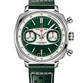 Breitling Top Time B01 Racing Green AB01771A1L1X1 — лимитированная модель, сочетающая винтажную эстетику и современные технологии, вдохновлённая гоночными хронографами 1960-х годов. Корпус диаметром 38 мм выполнен из нержавеющей стали с полированной отделкой. На задней крышке — гравировка «One of 750», указывающая на ограниченный тираж. Циферблат защищён сапфировым стекломСапфировое стеклоПрочный и надёжный материал из кристалла сапфира синтетического происхождения, характеризующийся особой твёрдостью и устойчивостью к царапинам и повреждениям. с антибликовым покрытиемАнтибликовое покрытиеСлой оксида металла в 0,13-0,3 микрон, благодаря которому стекло часов не бликует и не отражает свет. Антибликовое покрытие уменьшает отражение света в 10 раз, обеспечивая отличную читаемость показателей циферблата., устойчивым к царапинам и бликам. Зелёный циферблат оформлен в характерном стиле «surfboard» с двумя белыми субциферблатами. Разметка и стрелки покрыты люминесцентным покрытиемЛюминесцентное покрытиеПозволяет считывать показания времени в темноте. Производители наносят на стрелки, часовые индексы, безель или поверхность циферблата светонакопительный состав, дающий холодное свечение. для хорошей читаемости в темноте. Модель оснащена автоматическим хронографомХронографФункция позволяет измерять отрезки времени с особой точностью: часы, минуты, секунды. Верным признаком хронографа является наличие на циферблате 3 дополнительных окошек-счётчиков. калибра Breitling B01 с 1/4-секундной точностью, 30-минутным счётчиком, запасом хода до 70 часов и сертификацией COSCСертификат COSCОфициальный сертификат, подтверждающий то, что часы ходят с особо высокой точностью. Для получения документа часы подвергаются тестовым испытаниям, разработанным швейцарским институтом тестирования хронометров COSC. Допустимая норма для механических часов -4/+6 секунд в день, для кварцевых моделей +/- 0,07 секунд в день.. Часы укомплектованы перфорированным зелёным кожаным ремешком на стандартной застежке, которая обеспечивает комфорт и надёжную фиксацию. Водонепроницаемость 100 метров делает модель подходящей для активного образа жизни и повседневной эксплуатации. Top Time B01 Racing Green — яркое переосмысление классического хронографа для поклонников винтажного стиля и швейцарской точности.