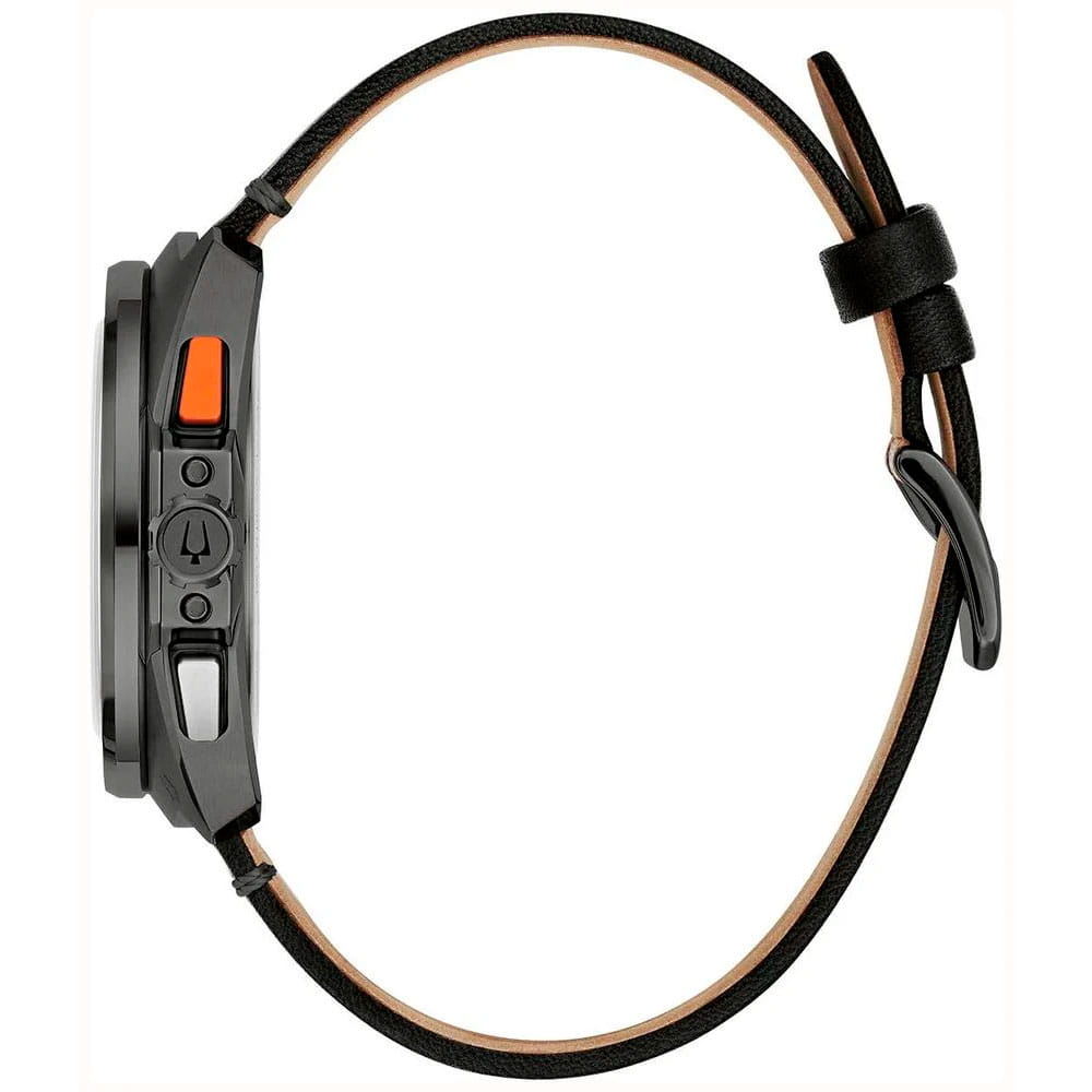 Мужские кварцевые часы-хронографХронографФункция позволяет измерять отрезки времени с особой точностью: часы, минуты, секунды. Верным признаком хронографа является наличие на циферблате 3 дополнительных окошек-счётчиков. с секундомеромСекундомерСекундоме́р — прибор, способный измерять интервалы времени с точностью до долей секунды. Bulova Racer Chronograph 98B428 – отражающий идеальное сочетание современного дизайна, надёжности и функциональности. Элегантный облик станет превосходным завершением образа, наделив его индивидуальным характером. Корпус из нержавеющей стали с PVD-покрытиемPVDУльтратонкое покрытие наносится в технике вакуумного напыления, сочетает в себе нитрид титана особой прочности со слоем золота или оксида хрома. Несёт в себе декоративную или защитную функцию. черного цвета, диаметром 42 мм идеально сбалансирован и элегантен. Сапфировое стеклоСапфировое стеклоПрочный и надёжный материал из кристалла сапфира синтетического происхождения, характеризующийся особой твёрдостью и устойчивостью к царапинам и повреждениям. защищает циферблат от царапин и устойчивое к механическим повреждениям. Апертура даты в позиции 6 часов. 12/24х часовой формат времени. Кожаный ремешок на стандартной застёжке обеспечивает комфортное ношение. Шкала тахиметраТахиметрРазмеченная шкала, располагается на ободке или безеле часов. Тахиметр позволяет рассчитать скорость на определённом участке пути, расстояние измеряется в километрах или милях. на безелеБезельВнешний ободок, закрепляющий стекло. В спортивных часах так называется поворотное кольцо с делениями на циферблате, выполняет роль таймера – замеряет отрезки времени на шкале. Неподвижный безель – элемент декора. Однонаправленно вращающийся безель на дайверских часах позволяет фиксировать моменты погружения и выныривания на поверхность.. Водозащита 100 метров позволит плавать, нырять и заниматься другими водными видами спорта. Стрелки и метки с люминесцентным покрытиемЛюминесцентное покрытиеПозволяет считывать показания времени в темноте. Производители наносят на стрелки, часовые индексы, безель или поверхность циферблата светонакопительный состав, дающий холодное свечение. позволяющие легко определять время даже в темноте. Эта модель – отличный выбор для тех, кто ищет сочетание стиля, качества и функциональности. Часы станут не только полезным аксессуаром, но и выразительным элементом вашего имиджа.