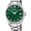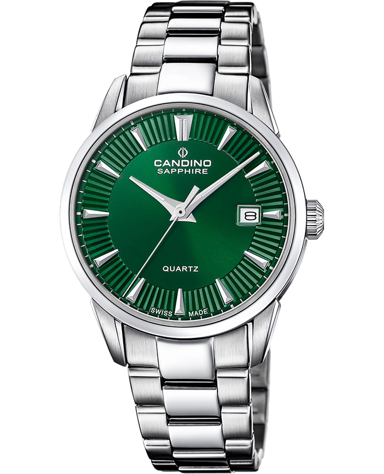 Мужские кварцевые часы Candino сочетают стильный дизайн и надёжность. Корпус выполнен из стали и защищён сапфировым стекломСапфировое стеклоПрочный и надёжный материал из кристалла сапфира синтетического происхождения, характеризующийся особой твёрдостью и устойчивостью к царапинам и повреждениям., устойчивым к царапинам. Циферблат зелёного цвета оформлен метками, стрелки покрыты люминесцентным покрытиемЛюминесцентное покрытиеПозволяет считывать показания времени в темноте. Производители наносят на стрелки, часовые индексы, безель или поверхность циферблата светонакопительный состав, дающий холодное свечение., что обеспечивает хорошую читаемость в темноте. Часы отображают часы, минуты, секунды и дату. Браслет стальной, фиксируется на раскладной застёжкеРаскладная застёжкаТакой тип застёжки используется только на браслетах из металла. Она никогда не раскрывается полностью, происходит разделение на 2 и более частей. Раскладывающая застёжка снизит вероятность потери часов к минимуму.. Водонепроницаемость составляет 100 WR, что позволяет использовать часы для плавания, ныряния и других водных видов спорта. Гарантия — 2 года.