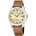 Мужские кварцевые часы Candino C4785/1 — это стильный и надёжный аксессуар швейцарского производства, подчёркивающий индивидуальность и хороший вкус. Корпус круглой формы выполнен из нержавеющей стали и защищён сапфировым стекломСапфировое стеклоПрочный и надёжный материал из кристалла сапфира синтетического происхождения, характеризующийся особой твёрдостью и устойчивостью к царапинам и повреждениям., устойчивым к царапинам. Циферблат бежевого цвета оформлен арабскими цифрами, а стрелки и метки оснащены люминесцентным покрытиемЛюминесцентное покрытиеПозволяет считывать показания времени в темноте. Производители наносят на стрелки, часовые индексы, безель или поверхность циферблата светонакопительный состав, дающий холодное свечение., обеспечивающим хорошую читаемость в темноте. Окошко даты расположено на отметке 3 часа, что делает часы не только элегантными, но и функциональными. Часы оснащены стальным браслетом серебристого цвета с раскладной застёжкойРаскладная застёжкаТакой тип застёжки используется только на браслетах из металла. Она никогда не раскрывается полностью, происходит разделение на 2 и более частей. Раскладывающая застёжка снизит вероятность потери часов к минимуму., который обеспечивает комфорт при ношении. Водонепроницаемость 100 м позволяет использовать часы в повседневных условиях, включая плавание. Модель сочетает в себе классический стиль, швейцарское качество и надёжность, оставаясь универсальным выбором для любого случая. В комплекте предусмотрены два ремешка из кожи и текстиля.