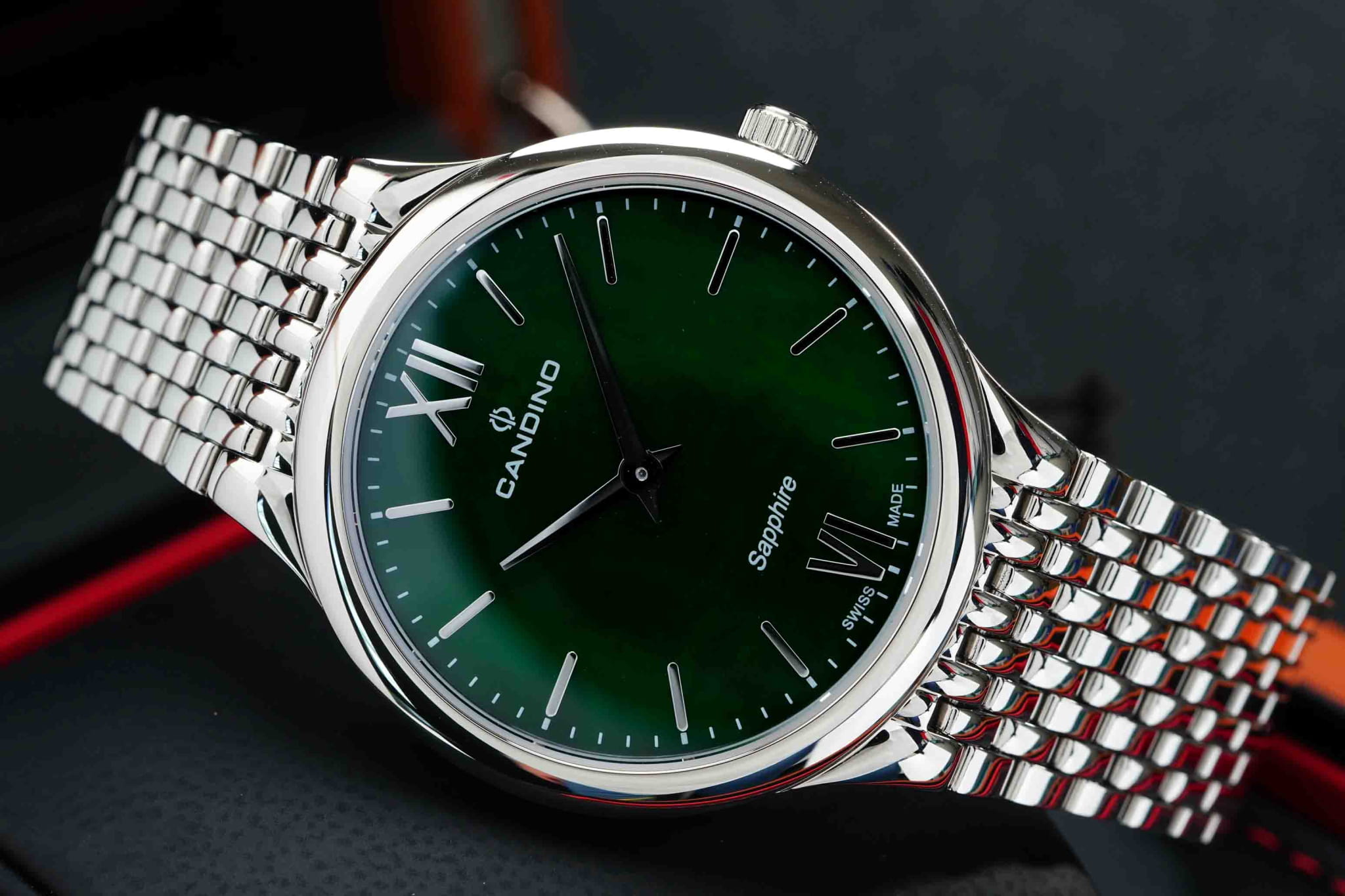 Мужские кварцевые часы Candino Series 1947 — это сочетание минимализма, швейцарского качества и современного дизайна. Корпус диаметром 39 мм и толщиной всего 6 мм выполнен из нержавеющей стали 316L, что делает часы особенно лёгкими и комфортными в ношении. Циферблат зелёного цвета оформлен двумя стрелками, без индикации даты, что придаёт дизайну чистоту и элегантность. Циферблат защищён сапфировым стекломСапфировое стеклоПрочный и надёжный материал из кристалла сапфира синтетического происхождения, характеризующийся особой твёрдостью и устойчивостью к царапинам и повреждениям., устойчивым к царапинам. Механизм — кварцевый произведённый в Швейцарии. Часы оснащены стальным браслетом с застёжкой «бабочка» с кнопкамиЗастёжка "бабочка"Такой вид застёжки дополняется предохранителями, помогающими избежать случайного раскрытия браслета. Обладают изящным исполнением. . Водонепроницаемость 50 м позволяет использовать часы в повседневных условиях. Гарантия — 2 года. Идеальный выбор для тех, кто ценит лаконичный стиль, точность и надёжность.