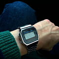 Наручные часы из прошлого вернулись в современной интерпретации. Надёжный корпус выполнен из полимерного пластика, стойко противостоящего ударам и повреждениям, для браслета с регулируемым креплением была выбрана нержавеющая сталь 316L. Электронная модель в серебристом цвете оснащена полезным функционалом: будильник, автоматический календарь, секундомер. Водостойкость 30 метров. Габариты: 36,3 x 38,6 x 9,6 мм.