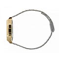 Брендовый аксессуар в золотом цвете имеет IP-покрытиеIP-покрытиеМетод ионного напыления. Демонстрирует повышенную устойчивость к истиранию, окислению и химическим веществам. Под воздействием высокого давления и температуры около 1500°C молекулы металла надёжно соединяются с частицами корпуса часов. стального браслета, защищающее от царапин и изнашивания, а также выполняющее декоративное предназначение. Высокоточный кварцевый механизм. Яркая электролюминесцентная подсветка. Противоударный корпусУдаропрочный корпусМеханизм заключён в корпус, выполненный из современных материалов, устойчивых к ударам, механическим повреждениям и падению с высоты: инновационный пластик, карбон, нержавеющая сталь, титан. 8-угольной формы из надёжного пластика. Удобная застёжка расстёгивается одним касанием. Будильник, автоматический календарь. Габариты: 36,3 x 38,6 x 9,6 мм.