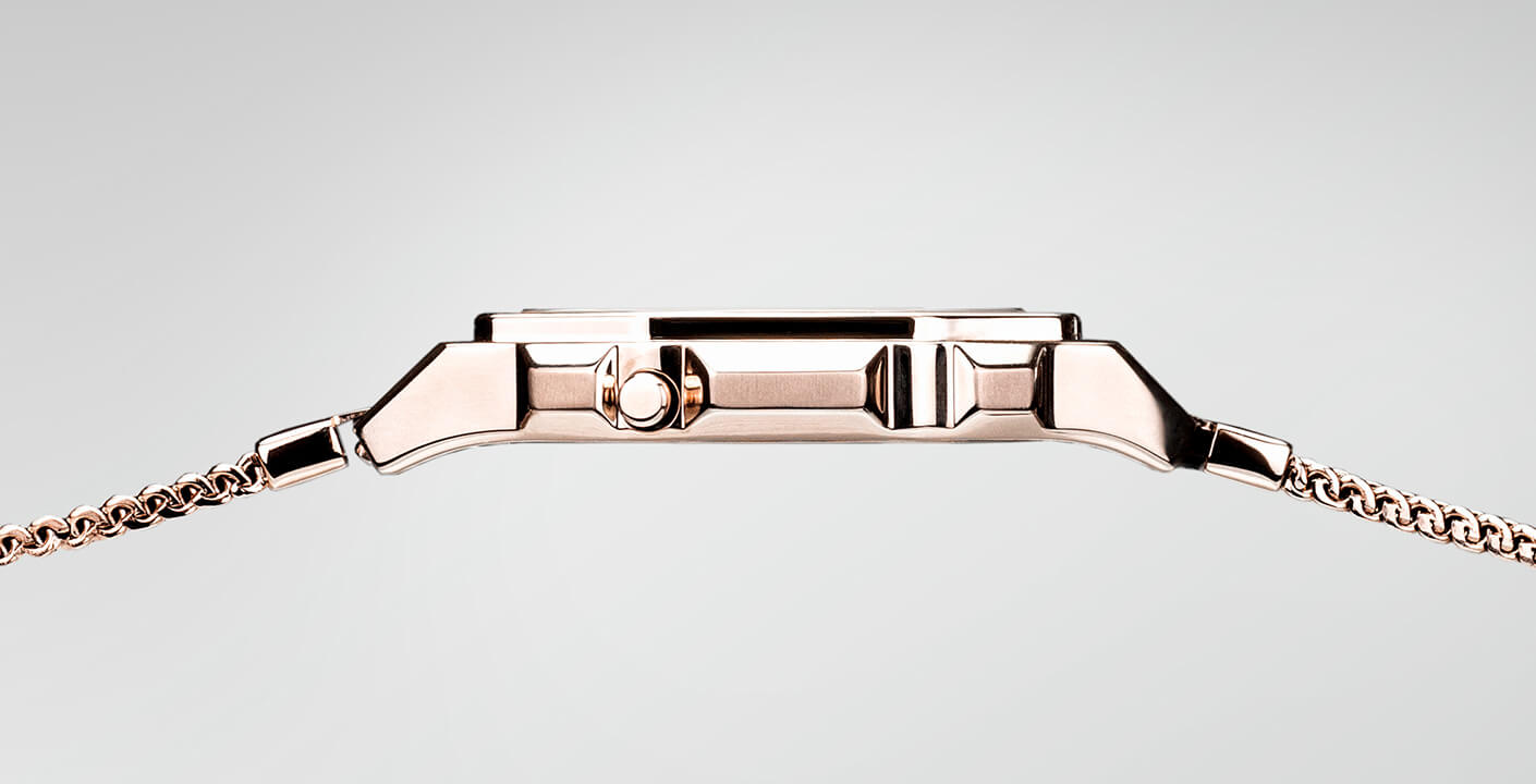 Уже известный 8-угольный ударопрочный корпусУдаропрочный корпусМеханизм заключён в корпус, выполненный из современных материалов, устойчивых к ударам, механическим повреждениям и падению с высоты: инновационный пластик, карбон, нержавеющая сталь, титан. выполнен из нержавеющей стали 316L, как и стильный браслет миланского плетения. Оригинально выглядит переливающаяся вставка, окружающая цифровое окошко. Кварцевый высокоточный механизм работает от батарейки, аккумулятор рассчитан на 3 года эксплуатации. Светодиодная подсветкаСветодиодная подсветкаСветодиодная или LED-подсветка обеспечивает появление яркого холодного свечения за счёт LED-элементов - маленьких лампочек. Они потребляют минимальное количество энергии, чаще всего можно встретить 1 светодиод, в нижней части циферблата. дисплея. Долговечное IP-покрытиеIP-покрытиеМетод ионного напыления. Демонстрирует повышенную устойчивость к истиранию, окислению и химическим веществам. Под воздействием высокого давления и температуры около 1500°C молекулы металла надёжно соединяются с частицами корпуса часов.. Минеральное стекло устойчиво к появлению царапин. Автоматический календарь, будильник, секундомер. Габариты: 38 x 39,6 x 7,3 мм.