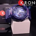 Привлекательно смотрится ударопрочный корпусУдаропрочный корпусМеханизм заключён в корпус, выполненный из современных материалов, устойчивых к ударам, механическим повреждениям и падению с высоты: инновационный пластик, карбон, нержавеющая сталь, титан. цвета синий металлик с глянцевым блеском. Модель оснащена усложнением Dual Time, что позволяет отображать время одновременно в двух часовых поясах. Функцию непременно оценят любительницы путешествий. Энергия от батарейки SR726W ( срок службы 2 года) питает японский кварцевый механизм. Включение и выключение звука кнопок. Светодиодная подсветкаСветодиодная подсветкаСветодиодная или LED-подсветка обеспечивает появление яркого холодного свечения за счёт LED-элементов - маленьких лампочек. Они потребляют минимальное количество энергии, чаще всего можно встретить 1 светодиод, в нижней части циферблата. циферблата, стрелки с покрытием NeobriteПодсветка NeobriteИспользование светонакопительных составов на основе сульфида цинка или алюмината стронция, яркий свет можно наблюдать на протяжении 6-10 часов после «зарядки» часов около источника света.. Минеральное стеклоМинеральное стеклоМинеральное стекло представляет собой искусственно выращенный минерал кварца. Такое стекло отличается особой устойчивостью к повреждениям и царапинам. Уступает по некоторым качествам сапфировому стеклу. устойчивое к мелким механическим повреждениям. Водонепроницаемость 100 метров. Ежечасный сигнал. Будильник, вечный календарьВечный календарьКлассическое часовое усложнение, представляющее собой календарь, рассчитанный на несколько лет вперёд (стандартно – до 2099 года). Определяет текущую дату, день недели, месяц., таймерТаймерОтсчитывает секунды в обратном направлении в заданном интервале времени., мировое времяМировое время Полезное часовое усложнение, отображающее время в основных городах и известных областях по всему миру, оно связано с часовыми поясами, удобно для путешественников и бизнесменов. – 31 часовой пояс, секундомерСекундомерСекундоме́р — прибор, способный измерять интервалы времени с точностью до долей секунды., UTCUTCВсемирное кординационное время, не имеющее привязки к географическому положению Гринвича, основывается на атомном отсчёте времени. Регулировка времени осуществляется более точно, чем устаревшее GMT.