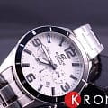 Стильный, мужские наручные часы Casio Edifice надежные и практичные. Кварцевый японский механизм Miyota. Точность хода не хуже -10 +15 сек./в месяц. Часы оснащены функцией хронографа, с точностью 1/10с и временем измерения 1ч. Циферблат белого цвета с контрастными элементами дизайна.  Стрелки и индексы с светонакопительным нанесением. Корпус и браслет выполнены из нержавеющей стали. Безель с IP покрытием черного цвета. Минеральное стекло устойчиво к появлению царапин. Водонепроницаемость 100М. В часах можно плавать. Степень водонепроницаемости не является величиной, эквивалентной функциональной рабочей глубине.