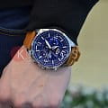 Стильные японские наручные кварцевые мужские часы. Круглый корпус часов выполнен из стали с антикоррозийными свойствами. Синий циферблат с контрастными элементами дизайна. Водонепроницаемость 10 ATM. Минеральное стекло, устойчивое к появлению царапин. Часы оснащены функцией хронографа. ремешок часов выполнен из натуральной кожи коричневого цвета.