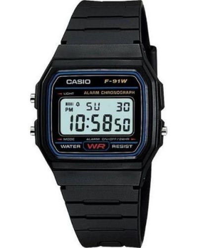 Электронные часы в чёрном исполнении напоминают первые модели от Casio благодаря винтажному 8-угольному ударопрочному корпусуУдаропрочный корпусМеханизм заключён в корпус, выполненный из современных материалов, устойчивых к ударам, механическим повреждениям и падению с высоты: инновационный пластик, карбон, нержавеющая сталь, титан., сделанному из надёжного пластика. Аксессуар с кварцевым механизмом работает от батарейки, характеризующейся высоким сроком службы - до 7 лет. Циферблат оснащён светодиодной микроподсветкойСветодиодная подсветкаСветодиодная или LED-подсветка обеспечивает появление яркого холодного свечения за счёт LED-элементов - маленьких лампочек. Они потребляют минимальное количество энергии, чаще всего можно встретить 1 светодиод, в нижней части циферблата., освещающей его сбоку. Органическое стекло легко полируется. Гибкий полимерный ремешок. Ежедневный будильник, секундомер, автоматический календарь, 12 и 24-х часовое отображение времени. Габариты: 33,2 x 38 x 8,5 мм.