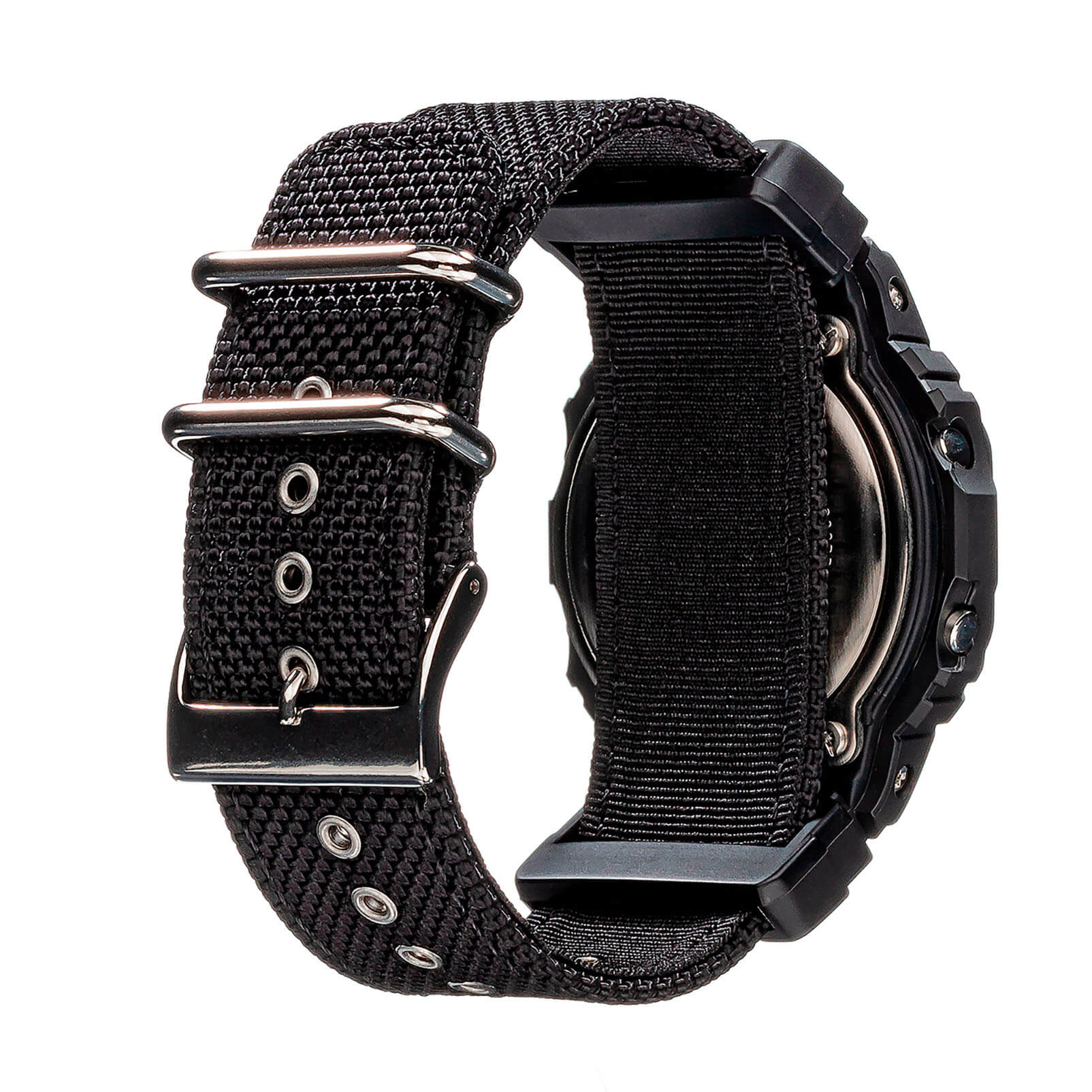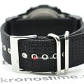 Брендовая модель отличается компактными размерами, что позволяет ей идеально сидеть на руке. Лаконичности добавляет и 8-угольный противоударный корпусУдаропрочный корпусМеханизм заключён в корпус, выполненный из современных материалов, устойчивых к ударам, механическим повреждениям и падению с высоты: инновационный пластик, карбон, нержавеющая сталь, титан. в матовом чёрном исполнении, сделанный из надёжного пластика. Минеральное стекло. Стильный нейлоновый браслет, разработанный совместно с Cordura®. Электролюминесцентная подсветкаЭлектролюминесцентная подсветкаЭлектролюминесцентная панель устанавливается под ЖК-экраном часов, при нажатии кнопки электричество преобразуется в свет за счёт подачи напряжения на атомы фосфора, такой тип подсветки позволяет освещать весь циферблат.. Водонепроницаемость до 20 бар. Отображение времени в 12/24-часовом формате. Секундомер, таймер с автоповтором, будильник, автоматический календарь. Габариты: 48,9 x 42,8 x 13,4 мм.