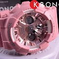 Японские женские часы GMA-S120DP-4AER из коллекции G-Shock представлены в спортивном облачении, но их пастельно-ягодный оттенок позволяет продемонстрировать изысканную натуру.