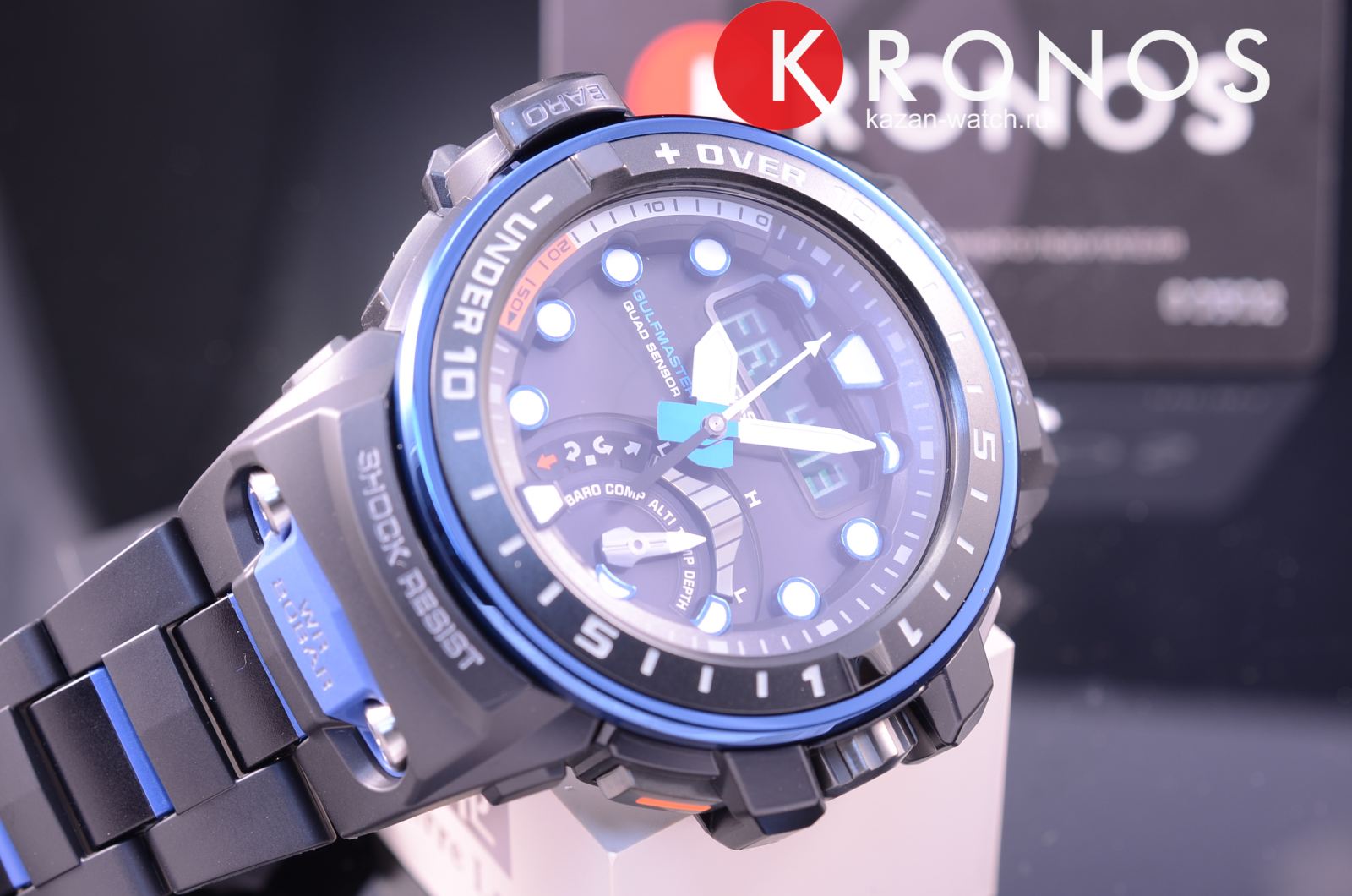 Современные японские наручные мужские часы. Круглый корпус и браслет часов выполнены из полимерного пластика синего цвета, безель часов из нержавеющей стали с антикоррозийными свойствами.  Водонепроницаемость 20 ATM. Сапфировое стекло, устойчивое к появлению царапин. Часы снабжены множеством дополнительных функций - барометр, высотомер, компас, термометр, рдиосинхронизация времени, глубиномер, данные о восходе и закате солнца. Источник энергии - солнечная батарея.