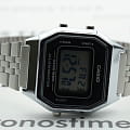 Электронные часы на каждый день в популярном ретро-стиле. Корпус - Пластиковый; Стекло - Пластик; Водозащита - 30 м. (WR 30); Материал ремешка - Нержавеющая сталь; Цвет ремешка - Серебристый; Цвет циферблата - Lcd.