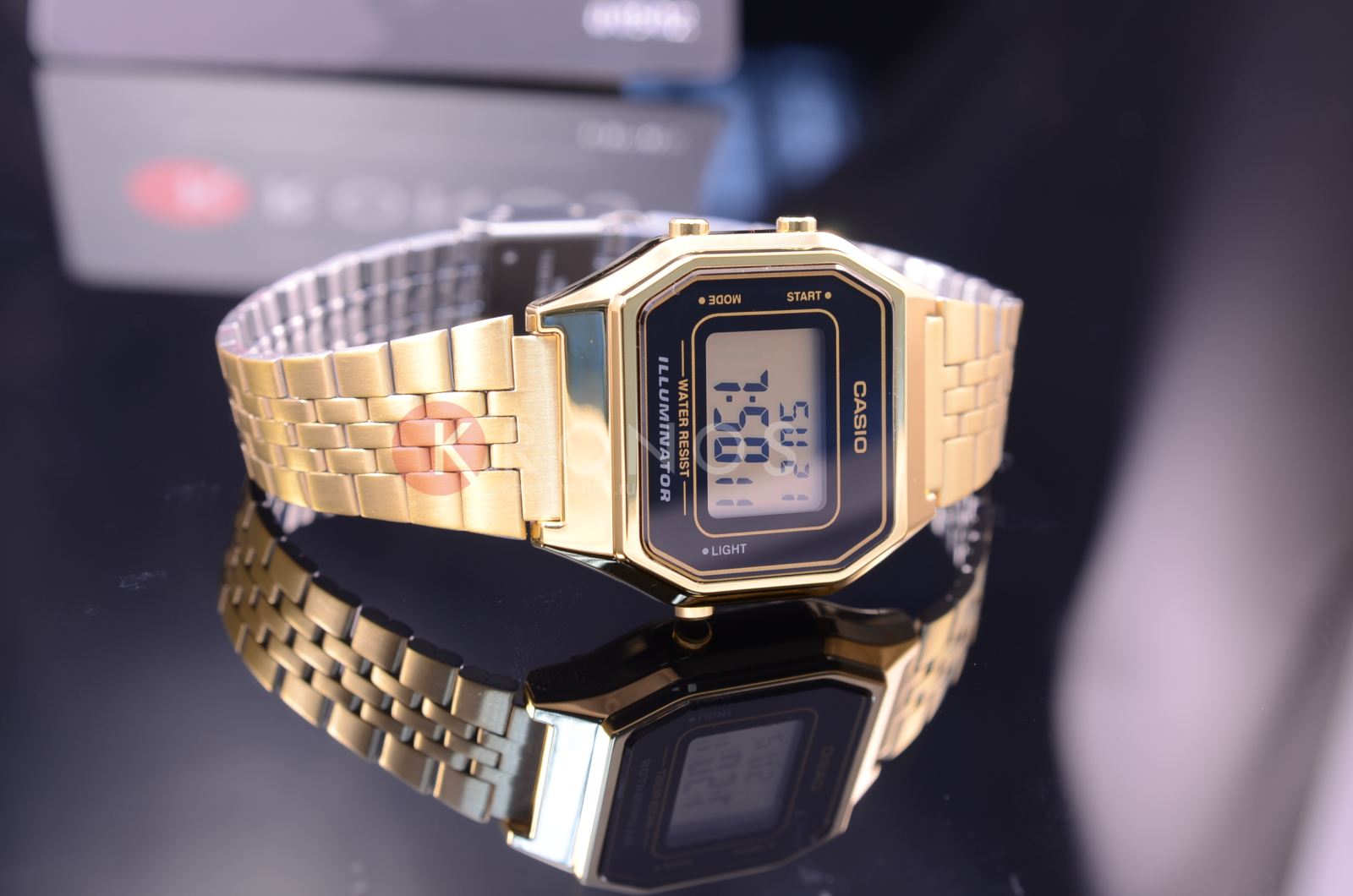 Спортивные часы на каждый день в популярном ретро-стиле. Корпус - Пластиковый; Стекло - Пластик; Водозащита - 30 м. (WR 30); Материал ремешка - Нержавеющая сталь, PVD покрытие; Цвет ремешка - Золотистый; Цвет циферблата - Lcd.