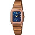 Стильные женские наручные часы в прямоугольном корпусе. Корпус - Пластиковый; Стекло - Пластик; Водозащита - 30 м. (WR 30); Материал ремешка - Нержавеющая сталь, PVD покрытие; Цвет ремешка - Коричневый; Цвет циферблата - Синий.