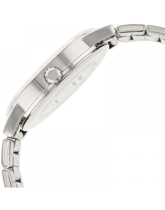 Ничего лишнего, только лаконичный светлый циферблат с серебристыми стрелками и часовыми метками. Браслет из нержавеющей стали 316L надёжно обхватывает запястье, безопасная складная застёжка с фиксатором не допустит случайного раскрытия. Высокоточный кварцевый механизм работает от батарейки, способной проработать без замены до 3 лет. Водостойкость до 5 бар. Дисплей с подсветкой. Минеральное стекло препятствует образованию царапин. Габариты: 47 x 40 x 8,1 мм.