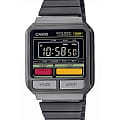 Спортивные японские мужские часы с секундомеромСекундомерСекундоме́р — прибор, способный измерять интервалы времени с точностью до долей секунды. Casio Vintage A120WEGG-1B, кварцевый механизм с высокой точностью. Издавая звуковой сигнал в установленное время, будильникБудильникБуди́льник — часы, в заданный момент времени подающие звуковой, световой и/или в редких случаях другой сигнал. напоминает о событиях, которые повторяются каждый день. Корпус из полимерного пластика. Класс водозащиты: 30 метров, позволит защитить корпус от случайных брызг или капель дождя. Браслет из нержавеющей стали на раскладной застёжкеРаскладная застёжкаТакой тип застёжки используется только на браслетах из металла. Она никогда не раскрывается полностью, происходит разделение на 2 и более частей. Раскладывающая застёжка снизит вероятность потери часов к минимуму..