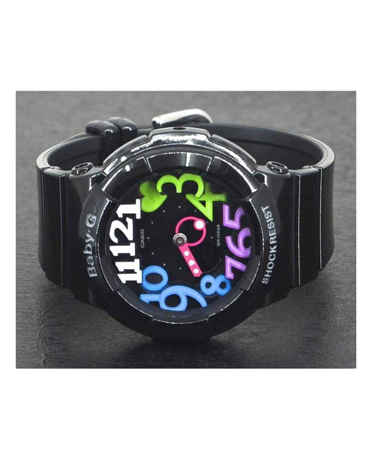 Японские женские часы-хронографХронографФункция позволяет измерять отрезки времени с особой точностью: часы, минуты, секунды. Верным признаком хронографа является наличие на циферблате 3 дополнительных окошек-счётчиков. Casio Baby-G BGA-131-1B2DR из коллекции Baby-G. Серия, которая выражает спортивность и цвет, которые являются основой бренда Baby-G. Минеральное стеклоМинеральное стеклоМинеральное стекло представляет собой искусственно выращенный минерал кварца. Такое стекло отличается особой устойчивостью к повреждениям и царапинам. Уступает по некоторым качествам сапфировому стеклу. устойчивое к появлению царапин, обладающее высокой прозрачностью. Корпус часов изготовлен из полимерного материала. Ударопрочный корпусУдаропрочный корпусМеханизм заключён в корпус, выполненный из современных материалов, устойчивых к ударам, механическим повреждениям и падению с высоты: инновационный пластик, карбон, нержавеющая сталь, титан. защищает механизм от ударов и вибрации. Подсветка Neon IlluminatorNeon IlluminatorУникальная подсветка циферблата. На индексы наносятся специальные флуоресцентные чернила, которые подсвечиваются светодиодной подсветкой. . Функция Мирового времениМировое время Полезное часовое усложнение, отображающее время в основных городах и известных областях по всему миру, оно связано с часовыми поясами, удобно для путешественников и бизнесменов. . СекундомерСекундомерСекундоме́р — прибор, способный измерять интервалы времени с точностью до долей секунды. с точностью измерения 1/100 секунды и измерением до 23 часов 59 минут 59,99 cек. ТаймерТаймерОтсчитывает секунды в обратном направлении в заданном интервале времени. обратного отсчета (диапазон времени 24 часа), автоматический календарь, 12/24 отображение времени. 5 ежедневных будильниковБудильникБуди́льник — часы, в заданный момент времени подающие звуковой, световой и/или в редких случаях другой сигнал., один с функцией Snooze. Класс водозащиты: 100 метров, позволит плавать без погружения. Ремешок из полимерного материала на стандартной застежке.