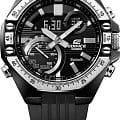 Мужские часы-хронографХронографФункция позволяет измерять отрезки времени с особой точностью: часы, минуты, секунды. Верным признаком хронографа является наличие на циферблате 3 дополнительных окошек-счётчиков. Casio Edifice ECB-10TP-1A, кварцевый механизм с высокой точностью. Минеральное стеклоМинеральное стеклоМинеральное стекло представляет собой искусственно выращенный минерал кварца. Такое стекло отличается особой устойчивостью к повреждениям и царапинам. Уступает по некоторым качествам сапфировому стеклу. устойчивое к появлению царапин, обладающее высокой прозрачностью. СекундомерСекундомерСекундоме́р — прибор, способный измерять интервалы времени с точностью до долей секунды. с точностью показаний 1/10с и временем измерения 1ч. Корпус изготовлен из нержавеющей стали с IP-покрытиемIP-покрытиеМетод ионного напыления. Демонстрирует повышенную устойчивость к истиранию, окислению и химическим веществам. Под воздействием высокого давления и температуры около 1500°C молекулы металла надёжно соединяются с частицами корпуса часов.. Ушки часов разработаны по схеме четырехрычажной подвески гоночного автомобиля. Двойная светодиодная подсветка Super Illuminator с функцией Afterglow (для подсветки не нужно удерживать кнопку, время послесвечения настраивается 1,5 или 3 сек): одновременно подсвечивается аналоговый циферблат и цифровой дисплей. Необритовое покрытиеПодсветка NeobriteИспользование светонакопительных составов на основе сульфида цинка или алюмината стронция, яркий свет можно наблюдать на протяжении 6-10 часов после «зарядки» часов около источника света. обеспечивает длительное послесвечение в темноте даже после кратковременного нахождения на свету. Мировое времяМировое время Полезное часовое усложнение, отображающее время в основных городах и известных областях по всему миру, оно связано с часовыми поясами, удобно для путешественников и бизнесменов. – 38 городов, всемирное координированное время UTCUTCВсемирное кординационное время, не имеющее привязки к географическому положению Гринвича, основывается на атомном отсчёте времени. Регулировка времени осуществляется более точно, чем устаревшее GMT.