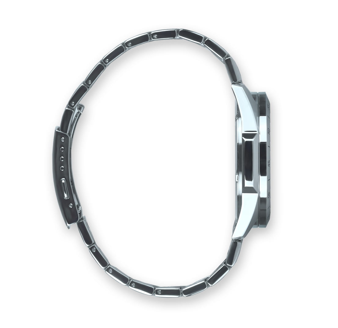 Аксессуар с автомобильным характером имеет ударопрочный корпусУдаропрочный корпусМеханизм заключён в корпус, выполненный из современных материалов, устойчивых к ударам, механическим повреждениям и падению с высоты: инновационный пластик, карбон, нержавеющая сталь, титан. из нержавеющей стали 316L, необычно смотрятся угловатые грани. На чёрном циферблате с бирюзовыми акцентами располагается множество окошек и счётчиков, но это не добавляет перегруженности. Японский кварцевый механизм с высокой точностью хода приводится в работу за счёт батарейки, рассчитанной на 3 года. Надёжный стальной браслет. Водостойкость 10 бар. Завинчивающаяся задняя крышка. Минеральное стеклоМинеральное стеклоМинеральное стекло представляет собой искусственно выращенный минерал кварца. Такое стекло отличается особой устойчивостью к повреждениям и царапинам. Уступает по некоторым качествам сапфировому стеклу.. Крупная индикация даты, хронографХронографФункция позволяет измерять отрезки времени с особой точностью: часы, минуты, секунды. Верным признаком хронографа является наличие на циферблате 3 дополнительных окошек-счётчиков., секундомер. Габариты: 47,1 x 51 x 11,3 мм.