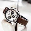Завершает образ черный кожаный ремешок с перфорацией , обеспечивающий комфорт и дышащий эффект при ежедневном ношении. Застежка классическая, удобная и надёжная. В комплекте — батарейка, рассчитанная на 2 года автономной работы .