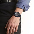 Карбоновый безель гармонируют с серым фоном. Часы выполнены в спортивном стиле, ссылаясь на дизайн эксклюзивных спорткаров и автомобильных деталей. Они основаны на технологии , оснащены расширенными функциональными возможностями: BluetoothBluetoothСовременная технология, позволяющая синхронизировать часы с телефоном и переносить данные. Часы с Bluetooth расширяют возможности вашего смартфона и делают его использование ещё более удобным. нового поколения с низким потреблением энергии, автоматический календарь, хронографХронографФункция позволяет измерять отрезки времени с особой точностью: часы, минуты, секунды. Верным признаком хронографа является наличие на циферблате 3 дополнительных окошек-счётчиков., секундомер, индикатор последнего круга дистанции Last Lap Indicator, мировое время. Модель комплектуется надёжным браслетом из нержавеющей стали. Заводная головка с защитой. Ударопрочный корпусУдаропрочный корпусМеханизм заключён в корпус, выполненный из современных материалов, устойчивых к ударам, механическим повреждениям и падению с высоты: инновационный пластик, карбон, нержавеющая сталь, титан.. Сапфировое стекло с антибликовым покрытием. Водонепроницаемость WR 100. Подсветка NeobriteПодсветка NeobriteИспользование светонакопительных составов на основе сульфида цинка или алюмината стронция, яркий свет можно наблюдать на протяжении 6-10 часов после «зарядки» часов около источника света.. Габариты: 50 x 45,2 x 9,6 мм.