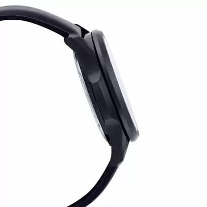 Ремешок выполнен из натуральной кожи чёрного цвета, обеспечивая комфорт при носке.  Модель обладает водонепроницаемостью до 100 метров, что делает её подходящей для плавания и сноркелинга.