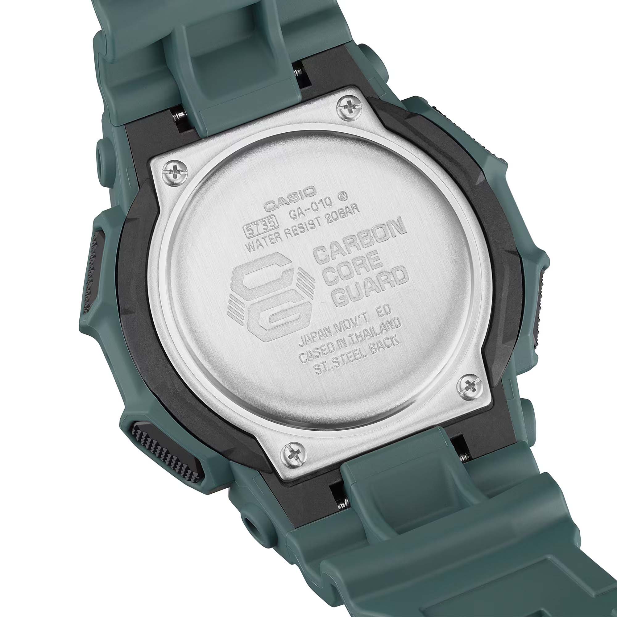 Японские мужские многофункциональные часы Casio GA-010-2A. Функции: автоматическая светодиодная подсветка, ударопрочный корпусУдаропрочный корпусМеханизм заключён в корпус, выполненный из современных материалов, устойчивых к ударам, механическим повреждениям и падению с высоты: инновационный пластик, карбон, нержавеющая сталь, титан., функция Мирового времениМировое время Полезное часовое усложнение, отображающее время в основных городах и известных областях по всему миру, оно связано с часовыми поясами, удобно для путешественников и бизнесменов. , секундомерСекундомерСекундоме́р — прибор, способный измерять интервалы времени с точностью до долей секунды., таймерТаймерОтсчитывает секунды в обратном направлении в заданном интервале времени., 5 будильниковБудильникБуди́льник — часы, в заданный момент времени подающие звуковой, световой и/или в редких случаях другой сигнал., автоматический календарь, 12/24 отображение времени. Минеральное стеклоМинеральное стеклоМинеральное стекло представляет собой искусственно выращенный минерал кварца. Такое стекло отличается особой устойчивостью к повреждениям и царапинам. Уступает по некоторым качествам сапфировому стеклу. устойчивое к появлению царапин, обладающее высокой прозрачностью. Класс водозащиты: 200 метров, позволит плавать, нырять и заниматься другими водными видами спорта. Срок жизни батареи 10 лет. Габариты (Ш x В x Г) 55,1 х 51,9 х 17,5. Вес 67 г.