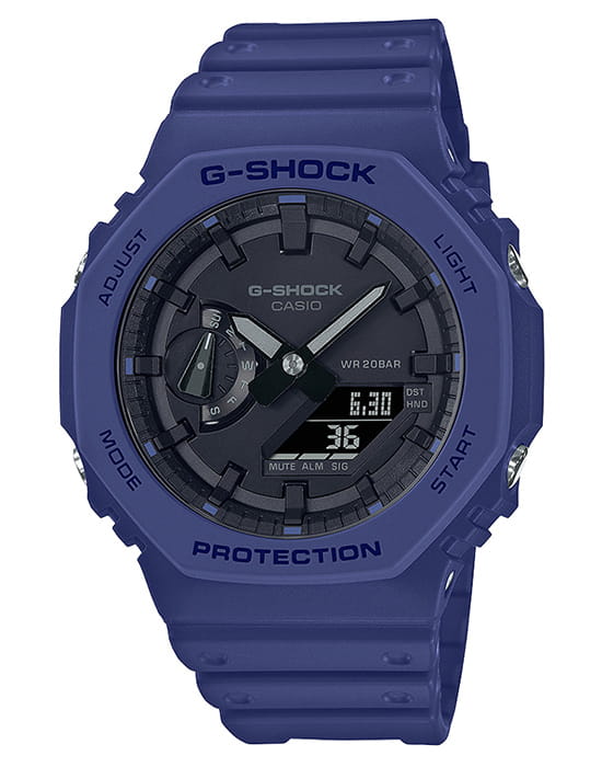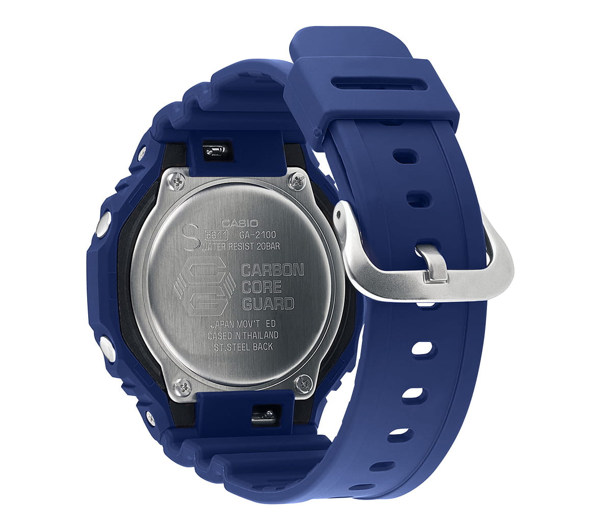 Японские мужские часы-хронографХронографФункция позволяет измерять отрезки времени с особой точностью: часы, минуты, секунды. Верным признаком хронографа является наличие на циферблате 3 дополнительных окошек-счётчиков. Casio G-Shock GA-2100-2A из коллекции G-Shock. Противоударный пластиковый корпус с карбоновыми волокнами более прочный и, в то же время, более легкий. Минеральное стеклоМинеральное стеклоМинеральное стекло представляет собой искусственно выращенный минерал кварца. Такое стекло отличается особой устойчивостью к повреждениям и царапинам. Уступает по некоторым качествам сапфировому стеклу. устойчивое к появлению царапин, обладающее высокой прозрачностью. Ударопрочный корпусУдаропрочный корпусМеханизм заключён в корпус, выполненный из современных материалов, устойчивых к ударам, механическим повреждениям и падению с высоты: инновационный пластик, карбон, нержавеющая сталь, титан. защищает механизм от ударов и вибрации. Светодиодная подсветкаСветодиодная подсветкаСветодиодная или LED-подсветка обеспечивает появление яркого холодного свечения за счёт LED-элементов - маленьких лампочек. Они потребляют минимальное количество энергии, чаще всего можно встретить 1 светодиод, в нижней части циферблата. освещает весь циферблат. Мировое времяМировое время Полезное часовое усложнение, отображающее время в основных городах и известных областях по всему миру, оно связано с часовыми поясами, удобно для путешественников и бизнесменов. – 48 городов (29 часовых поясов). СекундомерСекундомерСекундоме́р — прибор, способный измерять интервалы времени с точностью до долей секунды. с точностью измерения 1/100 секунды и измерением до 23 часов 59 минут 59,99 cек. ТаймерТаймерОтсчитывает секунды в обратном направлении в заданном интервале времени. обратного отсчета (диапазон времени 24 часа), автоматический календарь, 12/24 отображение времени. 5 будильниковБудильникБуди́льник — часы, в заданный момент времени подающие звуковой, световой и/или в редких случаях другой сигнал., один с функцией Snooze, ежечасный сигнал. Класс водозащиты: 200 метров, позволит плавать, нырять и заниматься другими водными видами спорта. Ремешок из полимерного материала на стандартной застежке.