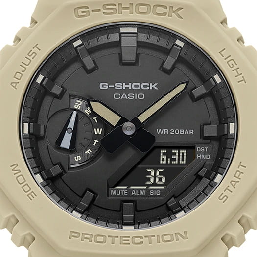 Оригинальный безельБезельВнешний ободок, закрепляющий стекло. В спортивных часах так называется поворотное кольцо с делениями на циферблате, выполняет роль таймера – замеряет отрезки времени на шкале. Неподвижный безель – элемент декора. Однонаправленно вращающийся безель на дайверских часах позволяет фиксировать моменты погружения и выныривания на поверхность. имеет форму октагона, часы являются современной интерпретацией модели DW-5000C. Чёрный циферблат дополнен контрастными серыми стрелками и часовыми индексами. Ударопрочный корпусУдаропрочный корпусМеханизм заключён в корпус, выполненный из современных материалов, устойчивых к ударам, механическим повреждениям и падению с высоты: инновационный пластик, карбон, нержавеющая сталь, титан. характеризуется повышенной устойчивостью к ударам и повреждениям за счёт технологии Carbon Core GuardCarbon Core Guard Новейшая структура корпуса, разработанная Casio. Полиуретановая пластина дополнительно усилена карбоновыми вставками, что придаёт специальную защиту от механических повреждений. Карбон отличается лёгкостью и прочностью.. Ремешок из полимерного материала с обновлённым креплением. Функция складывания стрелок для чтения показателей с дисплеев. Мировое времяМировое время Полезное часовое усложнение, отображающее время в основных городах и известных областях по всему миру, оно связано с часовыми поясами, удобно для путешественников и бизнесменов. , секундомер, 5 будильников, автоматический календарь. Срок службы батарейки – 3 года. Габариты: 48,5 x 45,4 x 11,8 мм.