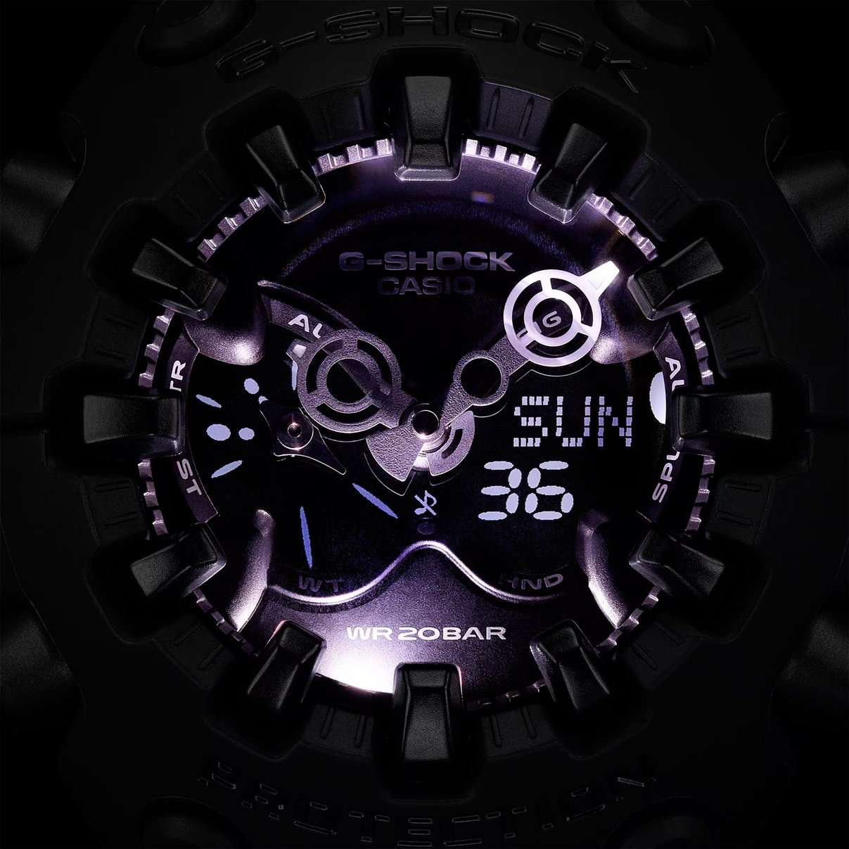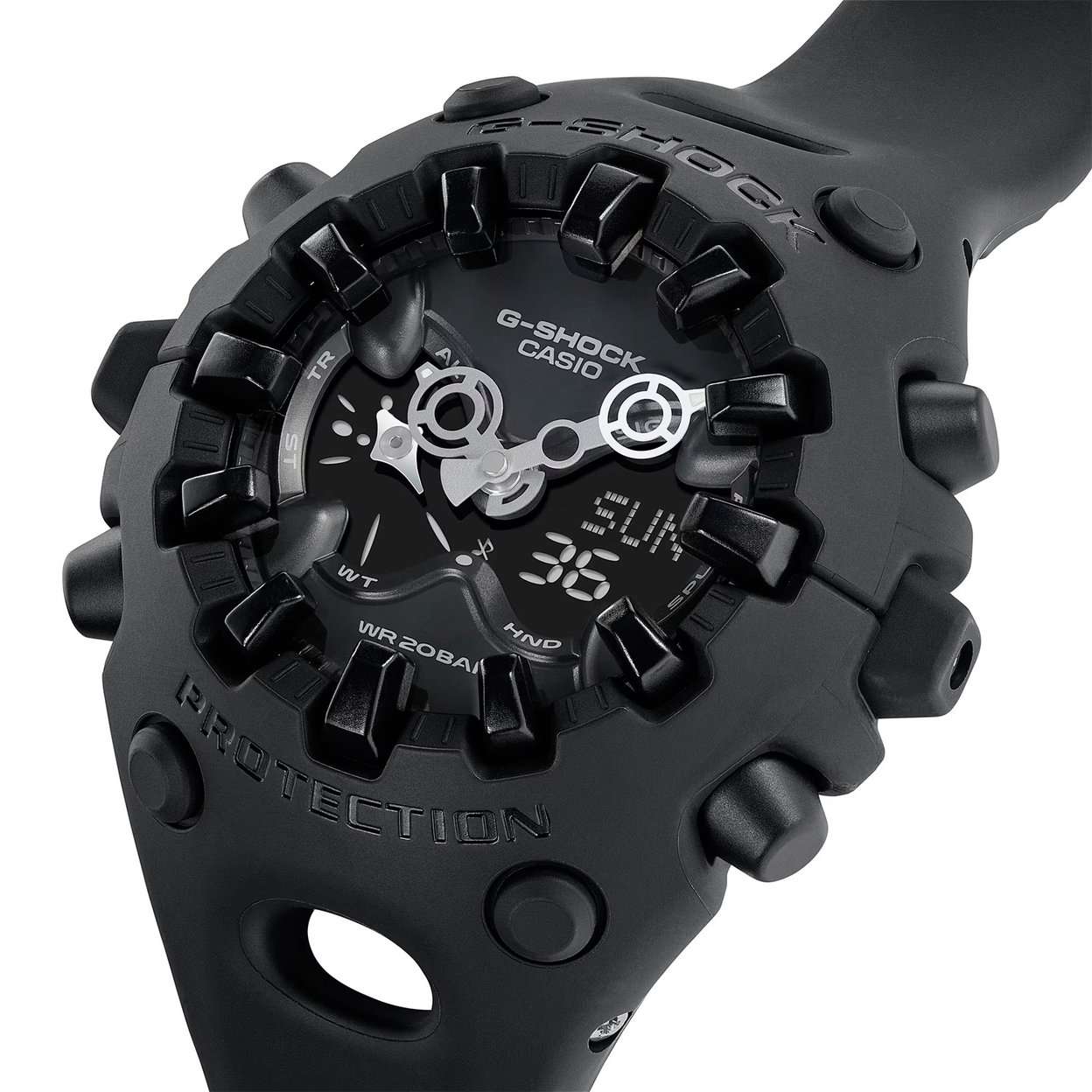 Мужские наручные часы Casio G-Shock GA-V01-1A — это яркое сочетание футуристического дизайна и передовых технологий. Модель выполнена в ударопрочном корпусеУдаропрочный корпусМеханизм заключён в корпус, выполненный из современных материалов, устойчивых к ударам, механическим повреждениям и падению с высоты: инновационный пластик, карбон, нержавеющая сталь, титан. из пластика и оснащена аналого-цифровым отображением времени, что делает их универсальными как для повседневной жизни, так и для активного образа жизни. Часы работают на кварцевом механизме, обеспечивающем точность хода и минимальное обслуживание. Батарейка рассчитана на 10 лет использования, что делает модель особенно экономичной и удобной в эксплуатации. Часы обладают водонепроницаемостью до WR200, позволяют плавать, нырять и заниматься другими водными видами спорта без опасений за сохранность механизма. Циферблат дополнен функцией мирового времени, окошком даты, а также возможностью переключения между 12-ти и 24-х часовым форматом времени. Присутствуют функции хронографа , секундомера с точностью 1/100 секунды, таймераТаймерОтсчитывает секунды в обратном направлении в заданном интервале времени. обратного отсчёта на 24 часа, пяти ежедневных будильниковБудильникБуди́льник — часы, в заданный момент времени подающие звуковой, световой и/или в редких случаях другой сигнал. и почасового сигнала. Также реализована функция временного перемещения стрелок, чтобы обеспечить беспрепятственный обзор цифровых показаний. Циферблат защищен прочным минеральным стекломМинеральное стеклоМинеральное стекло представляет собой искусственно выращенный минерал кварца. Такое стекло отличается особой устойчивостью к повреждениям и царапинам. Уступает по некоторым качествам сапфировому стеклу., а ремешок изготовлен из высококачественного полимерного материала, обеспечивающего комфорт при ношении.Светодиодная подсветкаСветодиодная подсветкаСветодиодная или LED-подсветка обеспечивает появление яркого холодного свечения за счёт LED-элементов - маленьких лампочек. Они потребляют минимальное количество энергии, чаще всего можно встретить 1 светодиод, в нижней части циферблата. освещает весь циферблат, после отпускания кнопки свечение продолжается еще некоторое время. Эта модель — настоящий прорыв в дизайне линейки G-Shock: футуристический внешний вид, вдохновлённый научной фантастикой, и богатый набор функций делают их не просто аксессуаром, а верным спутником в любом деле. Это идеальный выбор для тех, кто ценит стиль, надёжность и инновационные технологии.