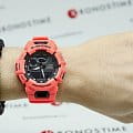 Японские мужские противоударные часы с шагомером Casio G-Shock GBA-900-4ADR (GBA-900-4A), электронный механизм с высокой точностью. Класс водозащиты: 200 метров, позволит плавать, нырять и заниматься другими водными видами спорта. Корпус часов изготовлен из пластика, цвета.