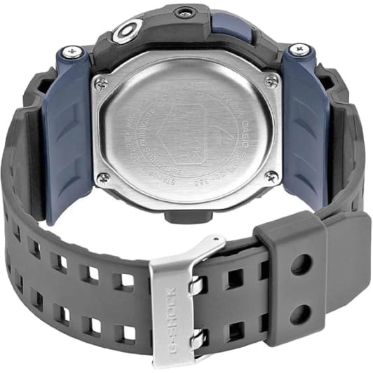 Многофункциональные ударопрочныеУдаропрочный корпусМеханизм заключён в корпус, выполненный из современных материалов, устойчивых к ударам, механическим повреждениям и падению с высоты: инновационный пластик, карбон, нержавеющая сталь, титан. спортивные мужские часы Casio G-Shock GD-350-8DR (GD-350-8), кварцевый механизм с высокой точностью. Класс водозащиты: 200 метров, позволит плавать, нырять и заниматься другими водными видами спорта. Корпус часов изготовлен из пластика. Часы оснащены функцией вибро, звукового и светового оповещения. Циферблат с светодиодной подсветкойСветодиодная подсветкаСветодиодная или LED-подсветка обеспечивает появление яркого холодного свечения за счёт LED-элементов - маленьких лампочек. Они потребляют минимальное количество энергии, чаще всего можно встретить 1 светодиод, в нижней части циферблата., при недостаточном освещении во время поворота запястья в сторону лица подсветка включается автоматически. Ударопрочный корпусУдаропрочный корпусМеханизм заключён в корпус, выполненный из современных материалов, устойчивых к ударам, механическим повреждениям и падению с высоты: инновационный пластик, карбон, нержавеющая сталь, титан. защищает механизм от ударов и вибрации. СекундомерСекундомерСекундоме́р — прибор, способный измерять интервалы времени с точностью до долей секунды. с точностью показаний 1/100с и временем измерения 1000ч. Сплит-хронографСплит-хронографИспользуется для измерения продолжительности нескольких временных отрезков, начинающихся одновременно, а заканчивающихся в разное время.. ТаймерТаймерОтсчитывает секунды в обратном направлении в заданном интервале времени. обратного отсчета от 1мин до 24ч. Мировое времяМировое время Полезное часовое усложнение, отображающее время в основных городах и известных областях по всему миру, оно связано с часовыми поясами, удобно для путешественников и бизнесменов. . 12-ти и 24-х часовой формат времени. Индикатор низкого заряда батареи. Функция включения/отключения звука. Световая и вибрационная индикация сигнала.