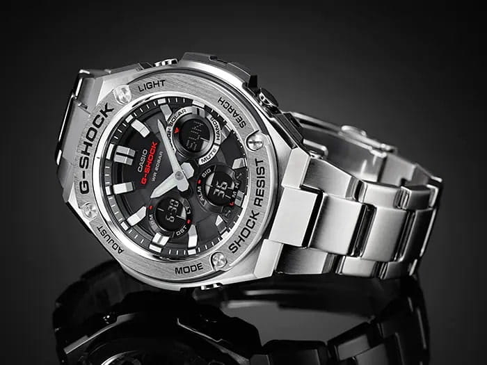 Противоударные, спортивные мужские часы в серии G-STEEL в стальном корпусе Casio G-Shock GST-S110D-1ADR (GST-S110D-1A), электронный механизм с высокой точностью. Класс водозащиты: 200 метров, позволит плавать, нырять и заниматься другими водными видами спорта. Корпус часов изготовлен из стали, серебристого цвета.