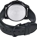 Отличная модель часов, которая станет идеальным вариантом на каждый день. Японские мужские часы с минеральным стекломМинеральное стеклоМинеральное стекло представляет собой искусственно выращенный минерал кварца. Такое стекло отличается особой устойчивостью к повреждениям и царапинам. Уступает по некоторым качествам сапфировому стеклу. Casio Collection MTP-VD01BL-1B, кварцевый механизм с высокой точностью. Корпус часов изготовлен из стали с IP-покрытиемIP-покрытиеМетод ионного напыления. Демонстрирует повышенную устойчивость к истиранию, окислению и химическим веществам. Под воздействием высокого давления и температуры около 1500°C молекулы металла надёжно соединяются с частицами корпуса часов.. Люминесцентная подсветкаЛюминесцентное покрытиеПозволяет считывать показания времени в темноте. Производители наносят на стрелки, часовые индексы, безель или поверхность циферблата светонакопительный состав, дающий холодное свечение.. 12-ти и 24-х часовой формат времени, число и день недели вынесены на отдельные циферблаты. Метки в виде штрихов и точек. Заводная головка с защитой. Ремешок с классической застежкой.