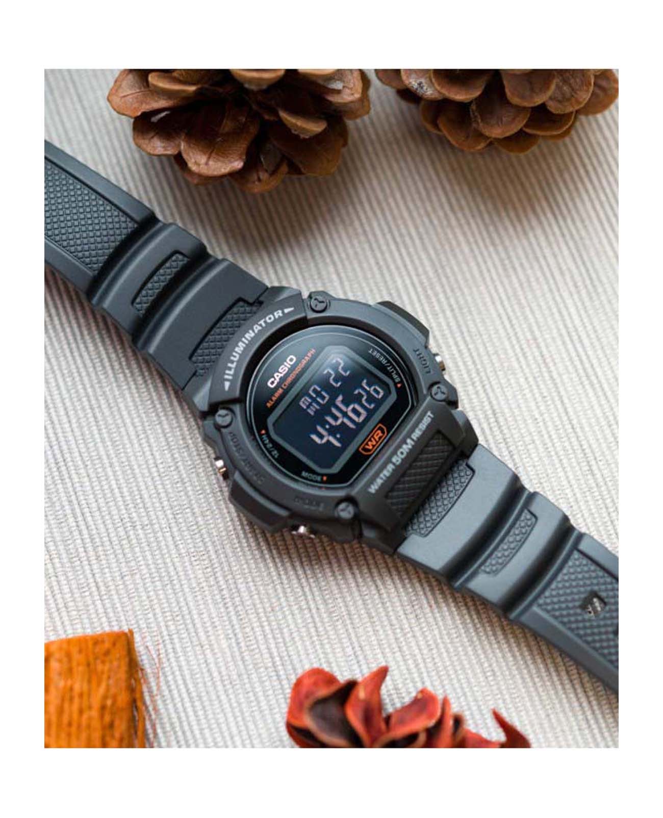 Спортивные японские мужские часы-хронографХронографФункция позволяет измерять отрезки времени с особой точностью: часы, минуты, секунды. Верным признаком хронографа является наличие на циферблате 3 дополнительных окошек-счётчиков. Casio Collection W-219H-8B, кварцевый механизм с высокой точностью, органическое стекло. Корпус часов изготовлен из плачтика. Светодиодная подсветкаСветодиодная подсветкаСветодиодная или LED-подсветка обеспечивает появление яркого холодного свечения за счёт LED-элементов - маленьких лампочек. Они потребляют минимальное количество энергии, чаще всего можно встретить 1 светодиод, в нижней части циферблата. освещает весь циферблат. Цвет подсветки: оранжевый. 12-ти и 24-х часовой формат времени. СекундомерСекундомерСекундоме́р — прибор, способный измерять интервалы времени с точностью до долей секунды. с точностью показаний 1/100с и временем измерения 1ч. Сплит-хронографСплит-хронографИспользуется для измерения продолжительности нескольких временных отрезков, начинающихся одновременно, а заканчивающихся в разное время.. Батарейка рассчитана на 7 лет.  Класс водозащиты: 50 метров, позволит защитить корпус от случайных брызг или капель дождя. Ремешок из полимерного материала на стандартной застежке.