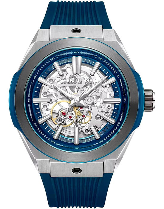 Cerruti 1881 CIWGR0073601 — эффектные механические мужские часы с открытой архитектурой, в которых эстетика инженерной точности соединяется с итальянской утончённостью. Корпус из нержавеющей стали с контрастным синим безелемБезельВнешний ободок, закрепляющий стекло. В спортивных часах так называется поворотное кольцо с делениями на циферблате, выполняет роль таймера – замеряет отрезки времени на шкале. Неподвижный безель – элемент декора. Однонаправленно вращающийся безель на дайверских часах позволяет фиксировать моменты погружения и выныривания на поверхность. с PVD-покрытиемPVDУльтратонкое покрытие наносится в технике вакуумного напыления, сочетает в себе нитрид титана особой прочности со слоем золота или оксида хрома. Несёт в себе декоративную или защитную функцию. подчёркивает современную форму и мощный характер модели. Скелетонизированный циферблат демонстрирует работу механизма, создавая ощущение глубины и движения. Металлизированные стрелки и метки с люминесцентным покрытиемЛюминесцентное покрытиеПозволяет считывать показания времени в темноте. Производители наносят на стрелки, часовые индексы, безель или поверхность циферблата светонакопительный состав, дающий холодное свечение. обеспечивают удобство считывания показаний, а надёжное минеральное стеклоМинеральное стеклоМинеральное стекло представляет собой искусственно выращенный минерал кварца. Такое стекло отличается особой устойчивостью к повреждениям и царапинам. Уступает по некоторым качествам сапфировому стеклу. защищает механизм от внешних воздействий. Эластичный силиконовый ремешок глубокого синего цвета гармонично дополняет стальной корпус и гарантирует комфорт при ношении. Cerruti 1881 — это слияние технологии, прозрачной механики и фирменной итальянской эстетики, созданное для тех, кто ценит движение в каждой детали.