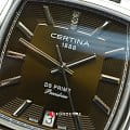 Модель с квадратным корпусом предстаёт в элегантном стиле. Циферблат с узорчатой вставкой украшен 3 бриллиантами. Работу часов обеспечивает швейцарский кварцевый механизм Precidrive™Precidrive™Инновационный кварцевый механизм Certina. Часы, оснащённые этим швейцарским калибром, приравниваются к точности к сертифицированным хронометрам, точность хода составляет +/-10 секунд в год.. Сапфировое стекло имеет антибликовую обработку. Ремешок из натуральной кожи. Апертура даты.