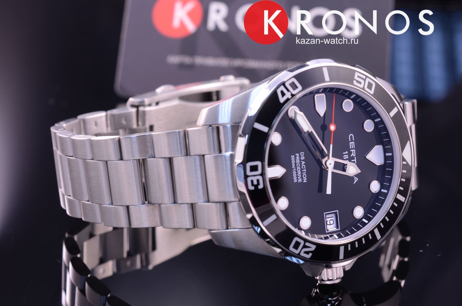 Часы отражают концепцию долговечности и практичности, использование инновационных материалов и высокоточного швейцарского калибра ETA F07.411 Precidrive™Precidrive™Инновационный кварцевый механизм Certina. Часы, оснащённые этим швейцарским калибром, приравниваются к точности к сертифицированным хронометрам, точность хода составляет +/-10 секунд в год. позволяет часам стильно выглядеть и сохранять безупречную работоспособность. Ударопрочный корпусУдаропрочный корпусМеханизм заключён в корпус, выполненный из современных материалов, устойчивых к ударам, механическим повреждениям и падению с высоты: инновационный пластик, карбон, нержавеющая сталь, титан. и браслет из стали, устойчивой к царапинам и повреждениям. Сапфировое стекло. Система Double SecurityDS ConceptDouble Security Concept, обозначает двойную надёжность и безупречную точность часов Certina. Двойная система защиты подразумевает обеспечение максимальной устойчивости к ударам и высоких показателей водонепроницаемости.. Вращающийся безельБезельВнешний ободок, закрепляющий стекло. В спортивных часах так называется поворотное кольцо с делениями на циферблате, выполняет роль таймера – замеряет отрезки времени на шкале. Неподвижный безель – элемент декора. Однонаправленно вращающийся безель на дайверских часах позволяет фиксировать моменты погружения и выныривания на поверхность.. Водонепроницаемость WR 300. Апертура даты, функция EOLEOLПредставляет собой систему, уведомляющую владельца часов о необходимости замены элемента питания. За 2 недели до полного разряда батарейки секундная стрелка перестаёт ходить чётко и начинает перепрыгивать на 3-4 деления.. «Умная» застёжка с удлинением для дайверовУдлинение для дайверовЗастёжка с удлинением для дайверов представляет собой безопасное крепление, которое позволяет надевать часы поверх гидрокостюма. Гибкая застёжка удлиняется на 1-2 миллиметра.. Диаметр корпуса: 41 мм.